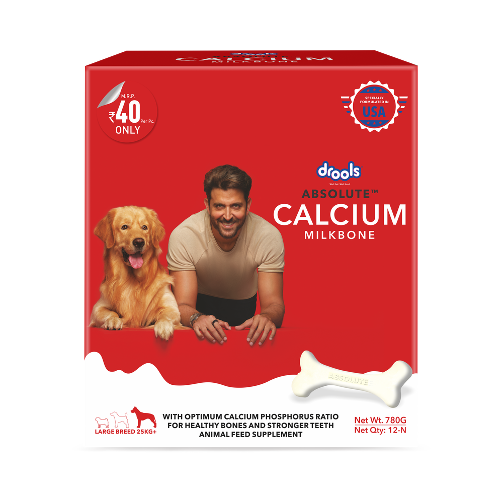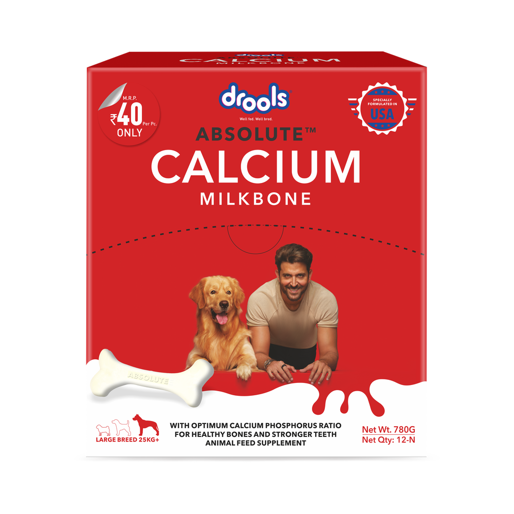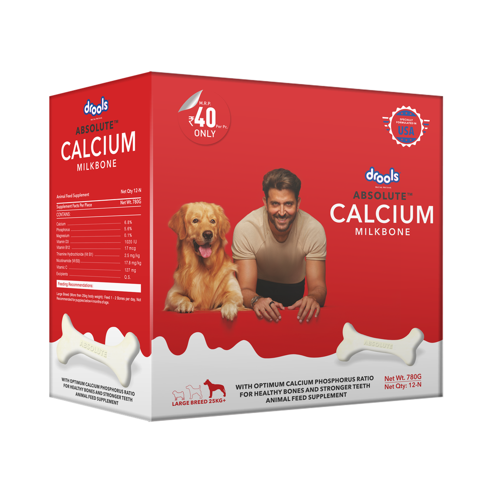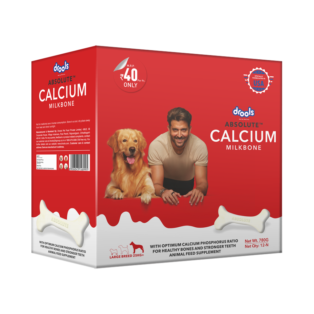 Give your pet the power of calcium with Drools Absolute Calcium Bone. Calcium is very important to us as well as for our pets. Absolute calcium bone supplement has the right ingredients to keep a dog's bones healthy and functioning at their optimum. It contains calcium and phosphorus in the right ratio, along with all the essential vitamins to increase connective tissue and tendon strength. Daily usage promotes your four-legged friend’s health.