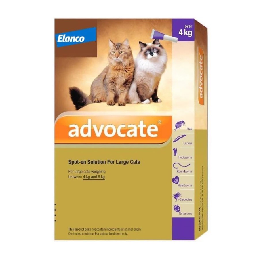 Advocate is a topical solution designed to protect your feline friend from harmful parasites like fleas, heartworms, and other worms. This spot-on treatment is suitable for cats weighing between 4 and 8 kilograms, providing broad-spectrum protection against these pesky critters. Simply apply the solution directly to your cat's skin, following the instructions carefully. The active ingredients work by disrupting the life cycle of these parasites, preventing them from causing discomfort and potential health issues for your furry companion. With its easy application and long-lasting efficacy, Advocate offers peace of mind, allowing your cat to roam and play without the worry of unwanted guests. Ensure proper dosage based on your cat's weight and consult your veterinarian for any specific concerns or recommendations. Keep your feline friend happy, healthy, and pest-free with Advocate's reliable spot-on solution.