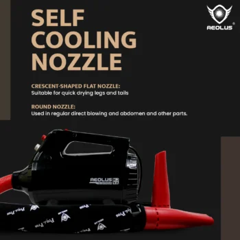 Aeolus Nova Brushless Single Motor Dog Dryer, Detachable Cleaning Filter, Power- 2200W.The Innovative Brushless Pet Dryer is a cutting-edge solution for professional pet grooming, offering unmatched performance and safety. Designed with a powerful 2200W motor, it delivers high air volume and fast wind speed, ensuring efficient drying with minimal effort. Its brushless motor technology eliminates carbon brushes, preventing the release of harmful carbon dust, making it safer for both groomers and pets. Equipped with zero leakage shell construction, the dryer operates with low noise at 80 dBA, enhancing comfort during grooming sessions. Features like an overheat protection heater add safety, while interchangeable flat and round nozzles provide versatility to meet various grooming needs. Built for durability and reliability, this pet dryer combines high mechanical efficiency with a long service life, setting a new standard in pet grooming equipment. Features: