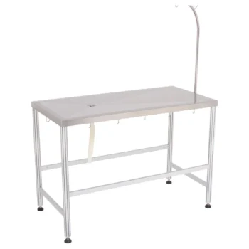The Omega Consulting Table with Aluminium Legs is a sturdy and versatile fixed stand table designed for various applications. It features a durable stainless steel tabletop supported by aluminum alloy legs, ensuring stability and longevity.