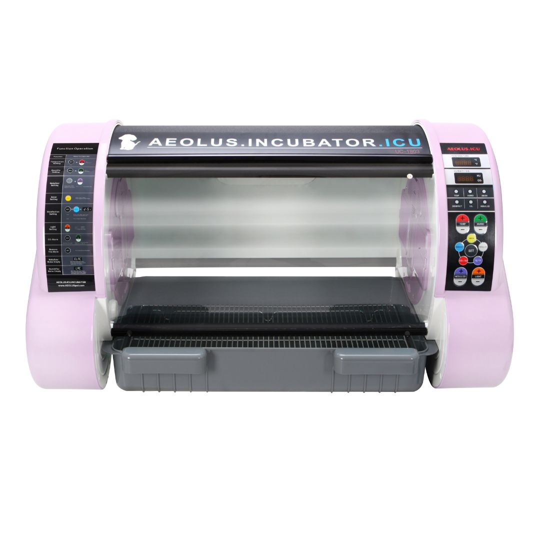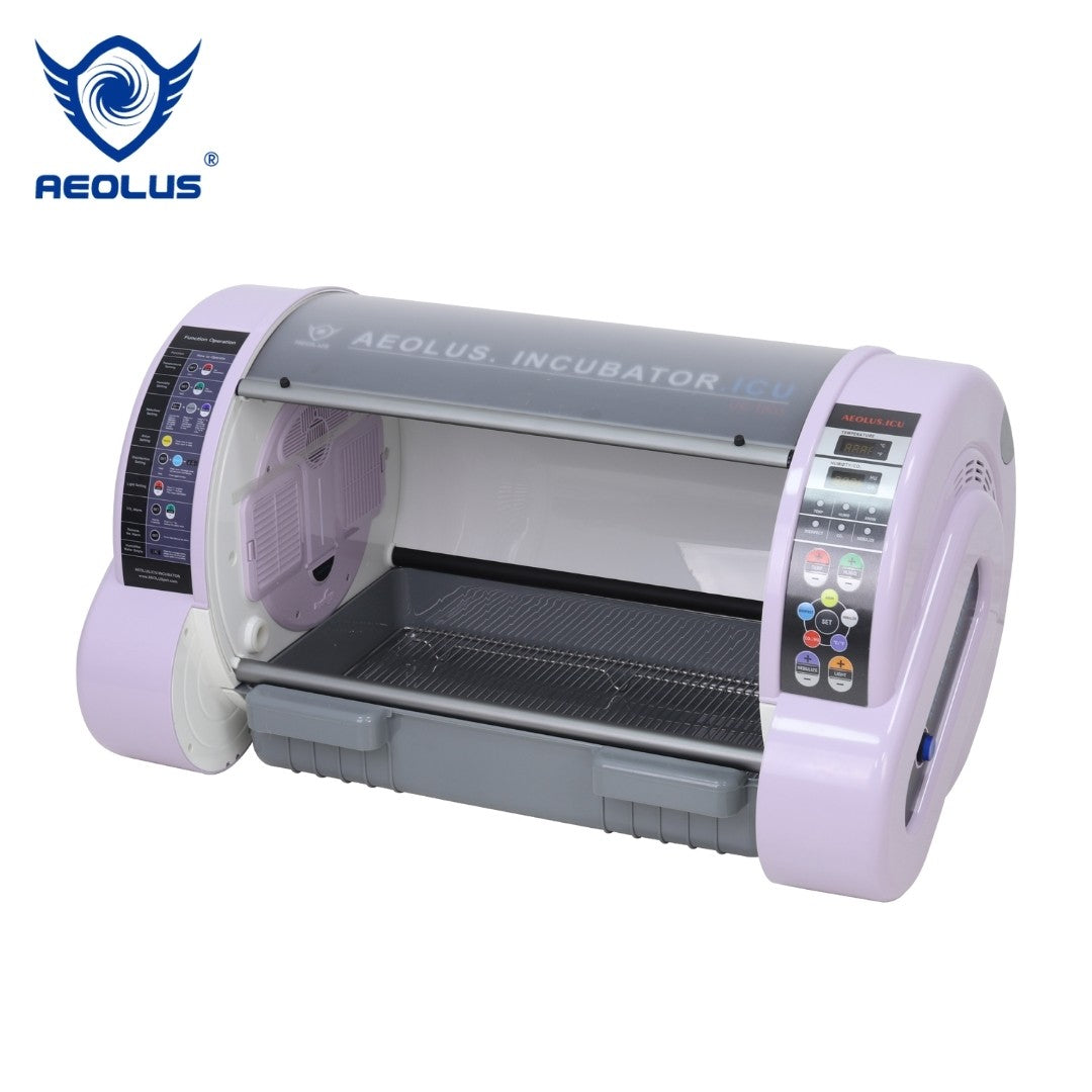 The AEOLUS ICU Incubator is a compact, efficient pet incubator uses dual ducts and double-circulation convective thermal regulation to create a bacteria-free therapeutic environment. It features an intelligent alarm system for five faults, including extreme temperature, excessive moisture, indoor carbon dioxide concentration, lack of water in the tank, and power supply interruption. The unique cabinet structure and double-layer thermostat cover prevent heat loss during nursing. The incubator offers young pets a bacteria-free and thermostatic cocoon, allowing for body temperature recovery, fluid infusion, atomization treatment, and health improvement.
