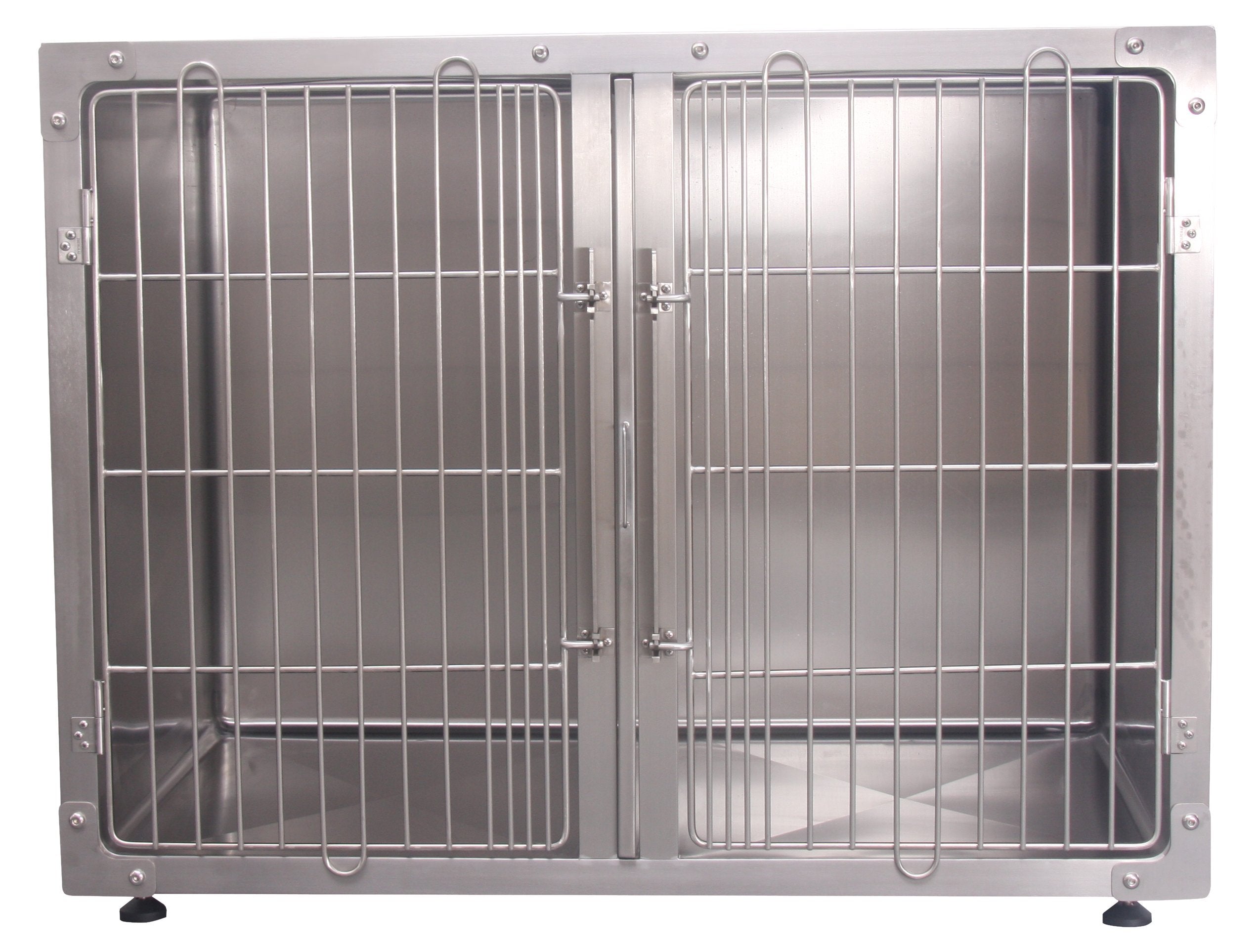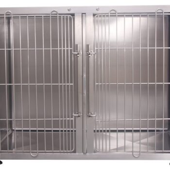 The Aeolus Stainless Steel Round Corner Large Modular Display Cage is a high-quality, hygienic, easy-to-clean cage ideal for young animals and adoption areas. It features thick, safe-tempered glass, round corners, and a sealed double-locking door latch system. Custom configurations allow single, double, or triple-stacked display and boarding options. The modular cage has ventilation holes, a transparent door, and a drainage system for easy cleaning and maintenance by efficiently removing waste and excess water. It is designed for training, quarantining, or behaviour improvements. It provides a clean and welcoming environment for potential pet owners. Aeolus Stainless Steel Round Corner Large Modular Cage comes in 3 sizes, i.e. small, medium, and large. Trust Aeolus for superior-quality pet operational products that prioritize performance and reliability.
