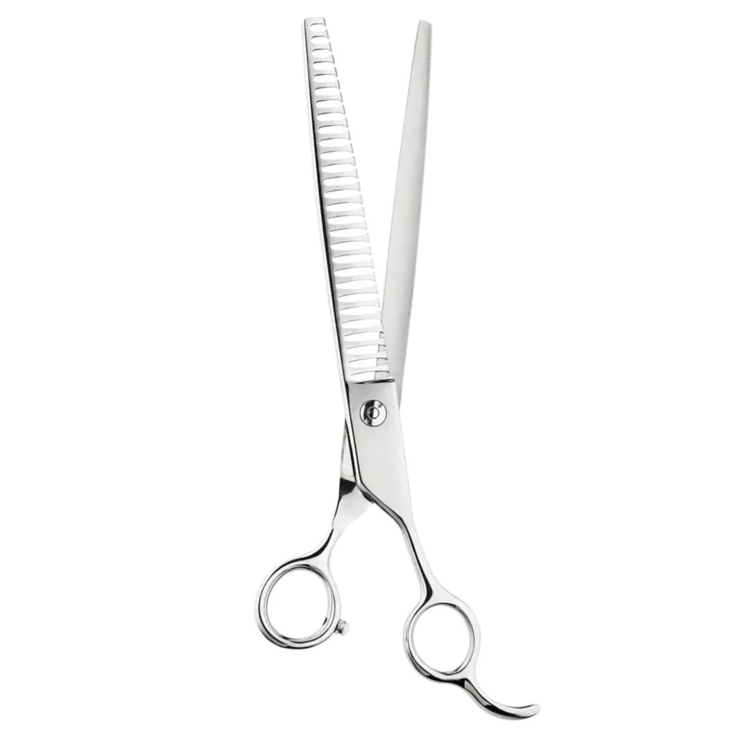 The Andis 6" Chunker Scissor are professional-grade grooming tools designed to shape coats quickly and efficiently. Ideal for thick or fluffy coats, these shears soften lines around the face and eyes, creating a natural, blended finish. They offer precision and comfort during grooming sessions.