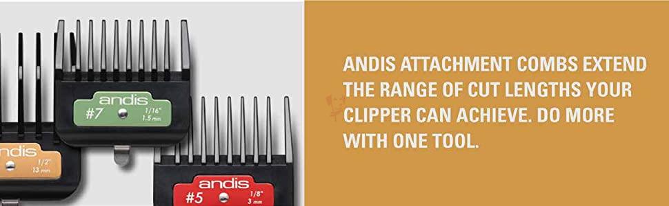 Andis Plastic Snap-On Attachment Comb Set is great for trimming. Different sizes help you to trim the length you like. It’s easy to Snap-On. Secure product and gives precise cutting. 4 piece kit for grooming versatility. Consists of polymer body material.