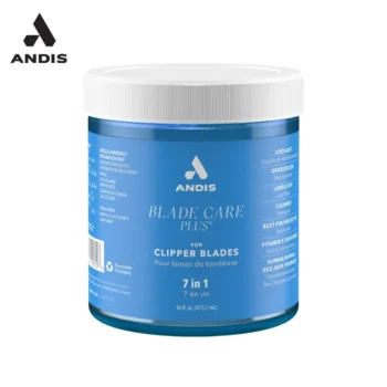 The Andis Blade Care Plus washes away hair, buildup and preservatives that accumulate on clipper blades. Ideal for after the grooming session, this easy to use dip jar allows quick and easy application, and washes away debris from blades to leave them clean, lubricated and cool. The solution contains Vitamin E, a natural decontaminant, and leaves a light film on the blade to help reduce friction and prolong blade life. Within 10 seconds, Blade Care Plus leaves blades clean, lubricated and cool for optimal performance.  Ideal for after the grooming session, this easy to use dip jar allows quick and easy application, and washes away debris from blades to leave them clean, lubricated and cool. The solution contains Vitamin E, a natural decontaminant, and leaves a light film on the blade to help reduce friction and prolong blade life.