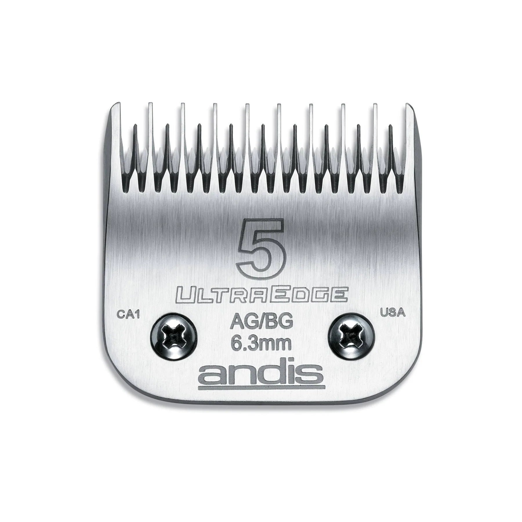 Andis® UltraEdge™ Clipper Blades are made from carbon-infused steel for a harder cutting surface that lasts longer. This size 5 Skip Tooth dog clipper blade has 1/4" blade cut (6.3 mm). Works effectively for a nice finish on Wire, Welsh, or Lakeland terriers.