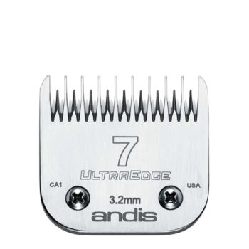 This UltraEdge dog clipper blade is the closest of the skip-tooth blades and is most often used when it becomes necessary to strip down a dog Sharpened to exact quality standards and hand-tested before it is shipped It is effective when used at those points where the groomer desires to blend the coat from close work flowing into an area of longer coat and comes with rockwell hardness rating of 65 Compatible with Andis Conair Oster and Wahl detachable-style clippers and made of carbon-infused steel. Chrome finish resists rust.