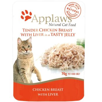 Applaws chicken breast with liver are a convenient way to give your cat the highest quality meat protein. Our chicken with Liver in jelly cat pouch is packed full of tasty chicken breast and succulent liver your cat will find irresistible