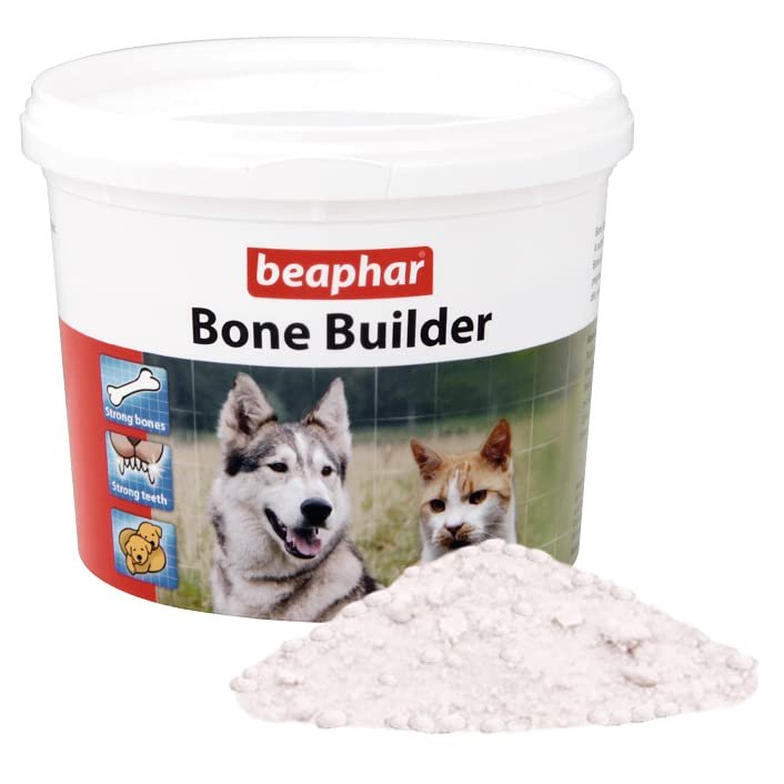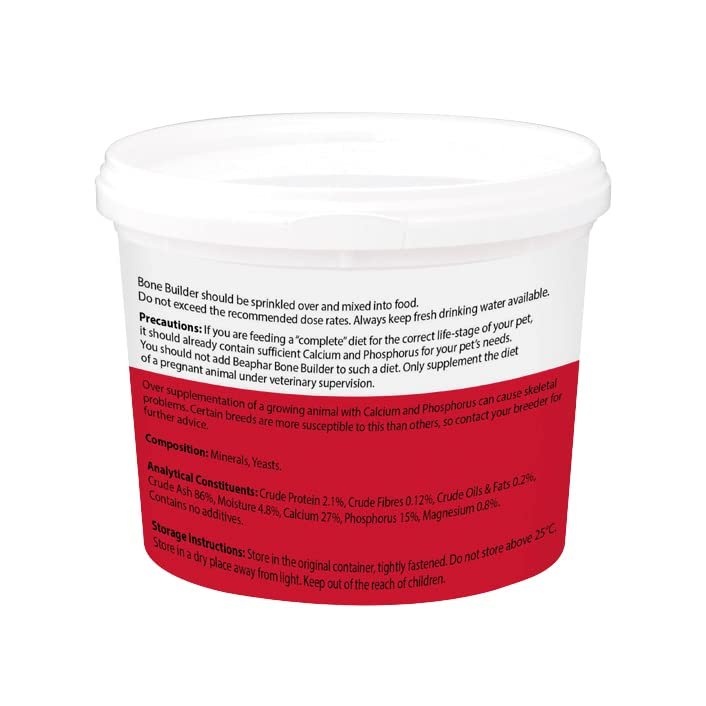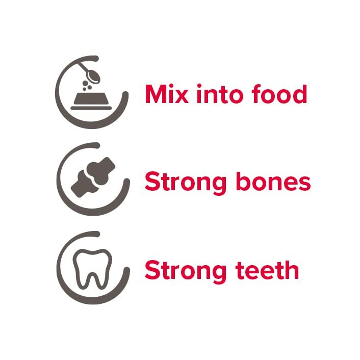 Dog Bone Builder provides the essential building blocks for strong, healthy bones and teeth. A nutritional supplement containing calcium and phosphorus in a balanced ratio, that can be added to home-prepared meat, soy and fish-based diets, which are likely to be deficient in these minerals.