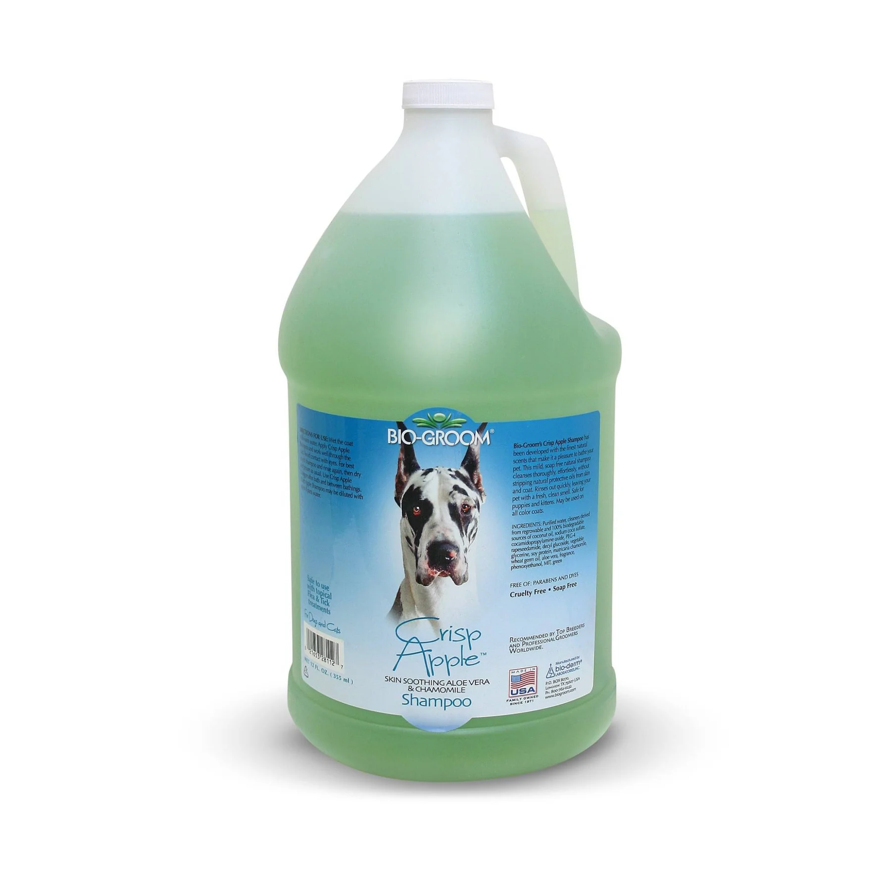 Crisp Apple Pet Shampoo is made from natural ingredients, featuring skin soothing chamomile and aloe vera, and is made with the finest apple scents. The all-natural aloe vera moisturizes and sooths, while the soy protein strengthens and conditions the coat and skin.