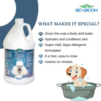 Biogroom Econo Groom Concentrated Dog Shampoo™ is recommended by top breeders and professional groomers worldwide and has the protein and lanolin enriched conditioning formula for routine use by professional groomers that combines the highest quality with maximum economy. As the shampoo is formulated from 100% natural ingredients it is extra mild and completely safe for hypo allergic dogs. It will not just clean your dog but give lustre and volume to its coat. As a result of its protein and lanolin content, the shampoo helps to prevent all kinds of dryness. Regular use of it will help to condition the skin and bring out the natural colour of your pet's coat. It makes the coat manageable and brings a lustrous gloss to it. The signature ingredient of the shampoo is coconut oil, which helps to prevent skin irritations and treat all sorts of skin infections. It has a soothing floral fragrance that will assure that your pet always smells great.