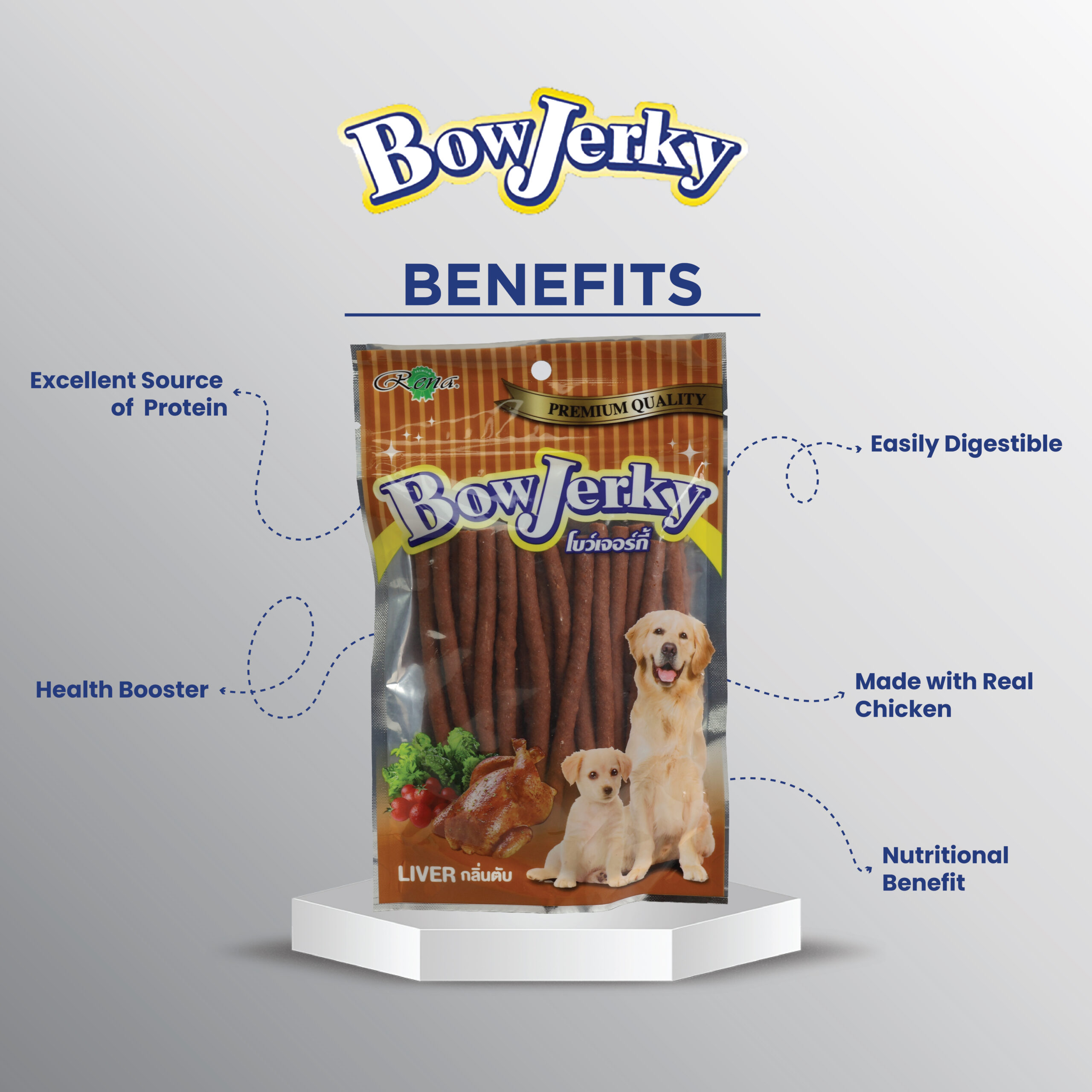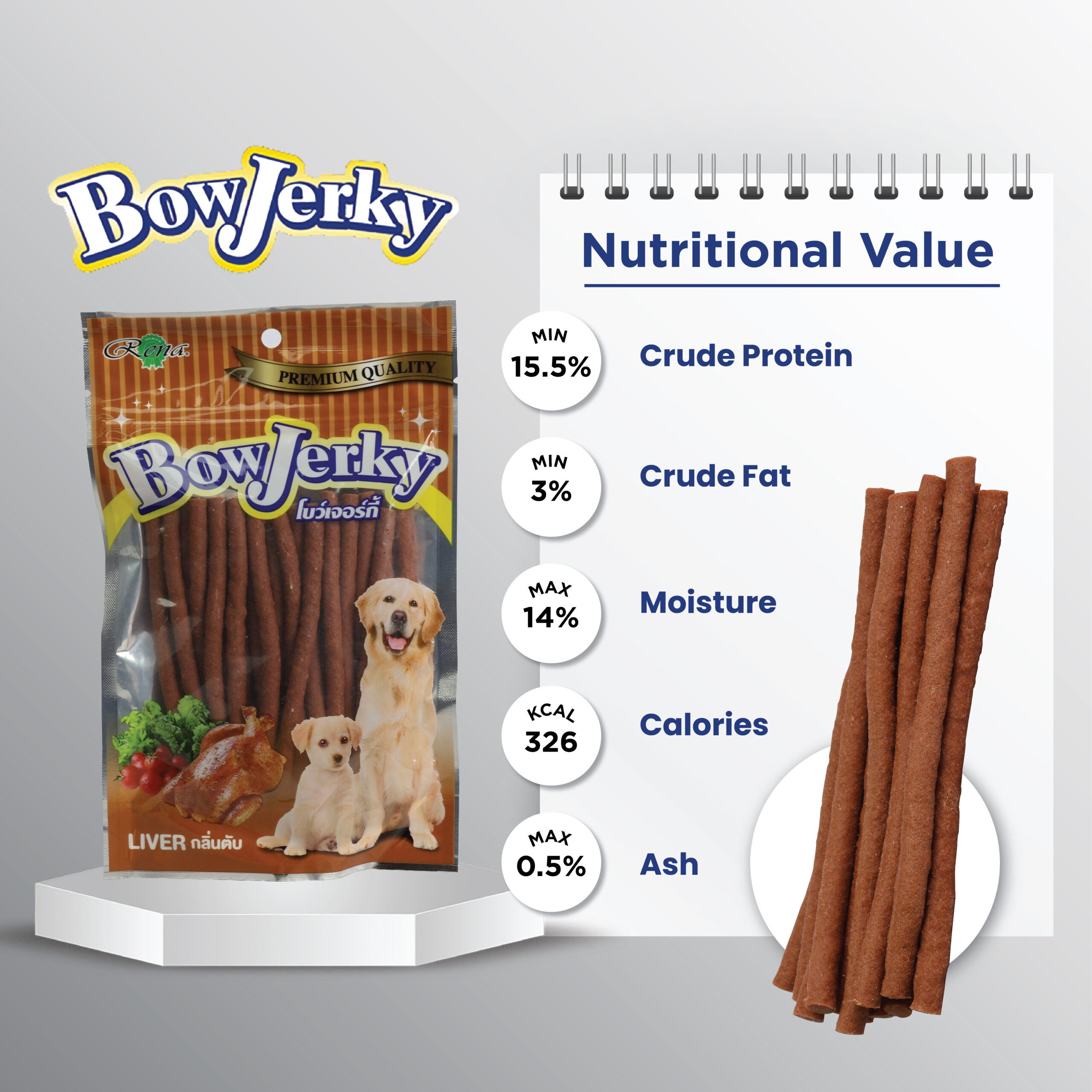 Made with 100% pure, cage-free, human consumption grade liver, Bow Jerky Liver Sticks are the ultimate liver treat for your dog. Benefits include: melting in your dog's mouth perfectly; using it as a training reward snack; being gentle on sensitive teeth; and being the best option for pets who are generally well-cared for.