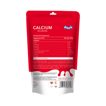 Give your pet the power of calcium with Drools Absolute Calcium Bone. Calcium is very important to us as well as for our pets. Absolute calcium bone supplement has the right ingredients to keep a dog's bones healthy and functioning at their optimum. It contains calcium and phosphorus in the right ratio, along with all the essential vitamins to increase connective tissue and tendon strength. Daily usage promotes your four-legged friend’s health.