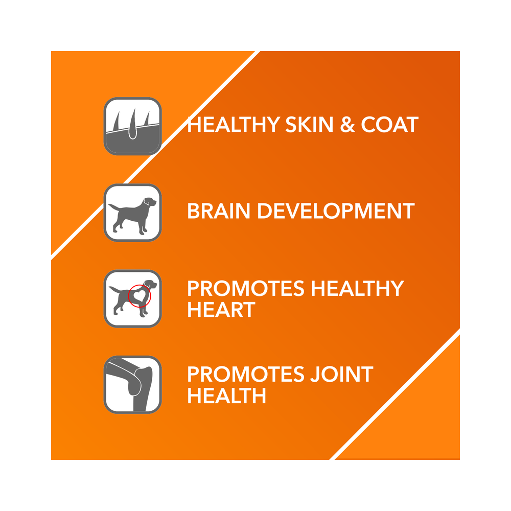1. It adds taste to your dog’s food ; 2. Concentrated DHA and EPA omega-3 fatty acids help nourish your pet's skin and promotes a smooth, lustrous coat ; 3. Omega fatty acids also promotes strong immune system, good cardiovascular health, strong brain and proper nervous function ; 4. Perfect for dogs of all breeds and ages