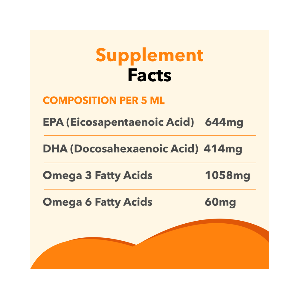 EPA (Eicosapentaenoic Acid) 644 mg, DHA (Docosahexaenoic Acid) 414 mg, Omega 3 Fatty Acids 1058 mg, Omega 6 Fatty Acids 60 mg