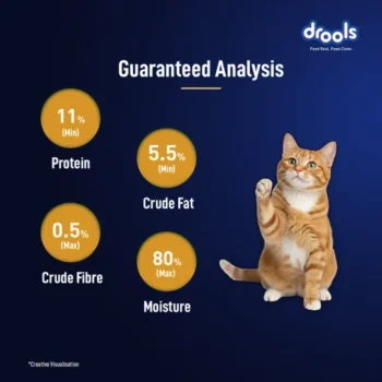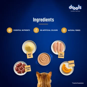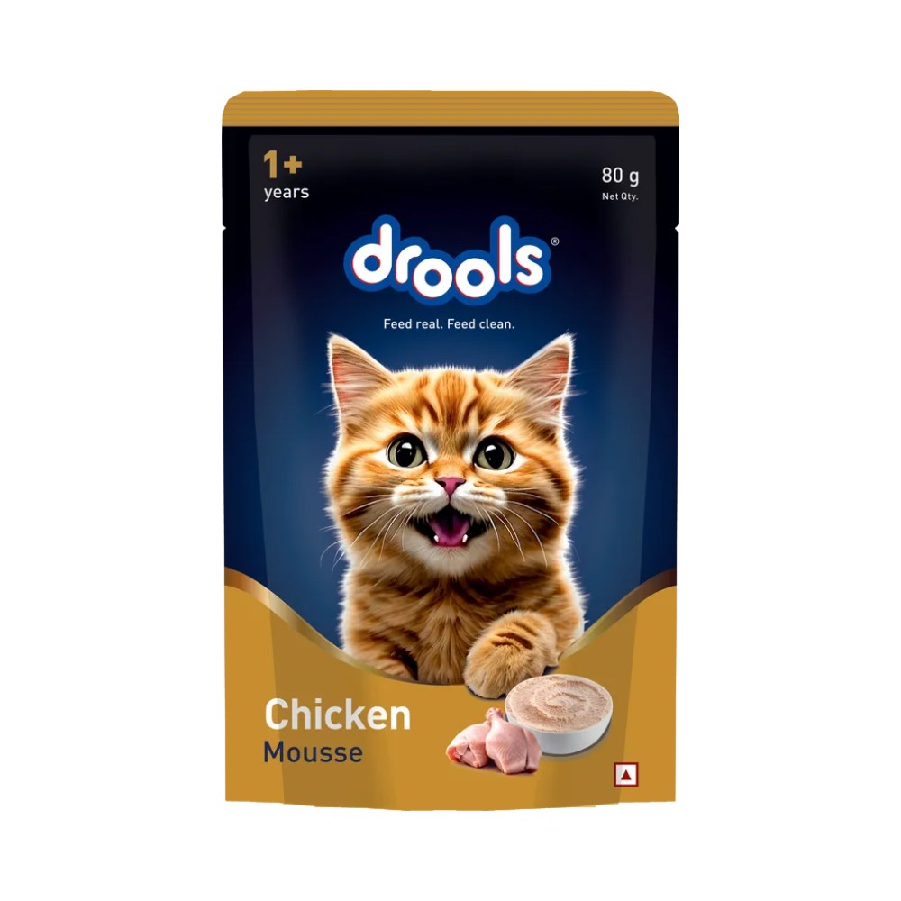 Drools Chicken Mousse is a delicious, protein rich wet food specially formulated for adult cats. Made with real chicken, hydrolysed chicken liver and essential nutrients, it is enriched with taurine for heart and vision care. Mousse smooth texture is highly palatable and easy to digest. It also supports hydration and a shiny coat. Free from artificial colors and preservatives, it delivers complete nutrition to help keep your cat healthy, active and satisfied at every meal.