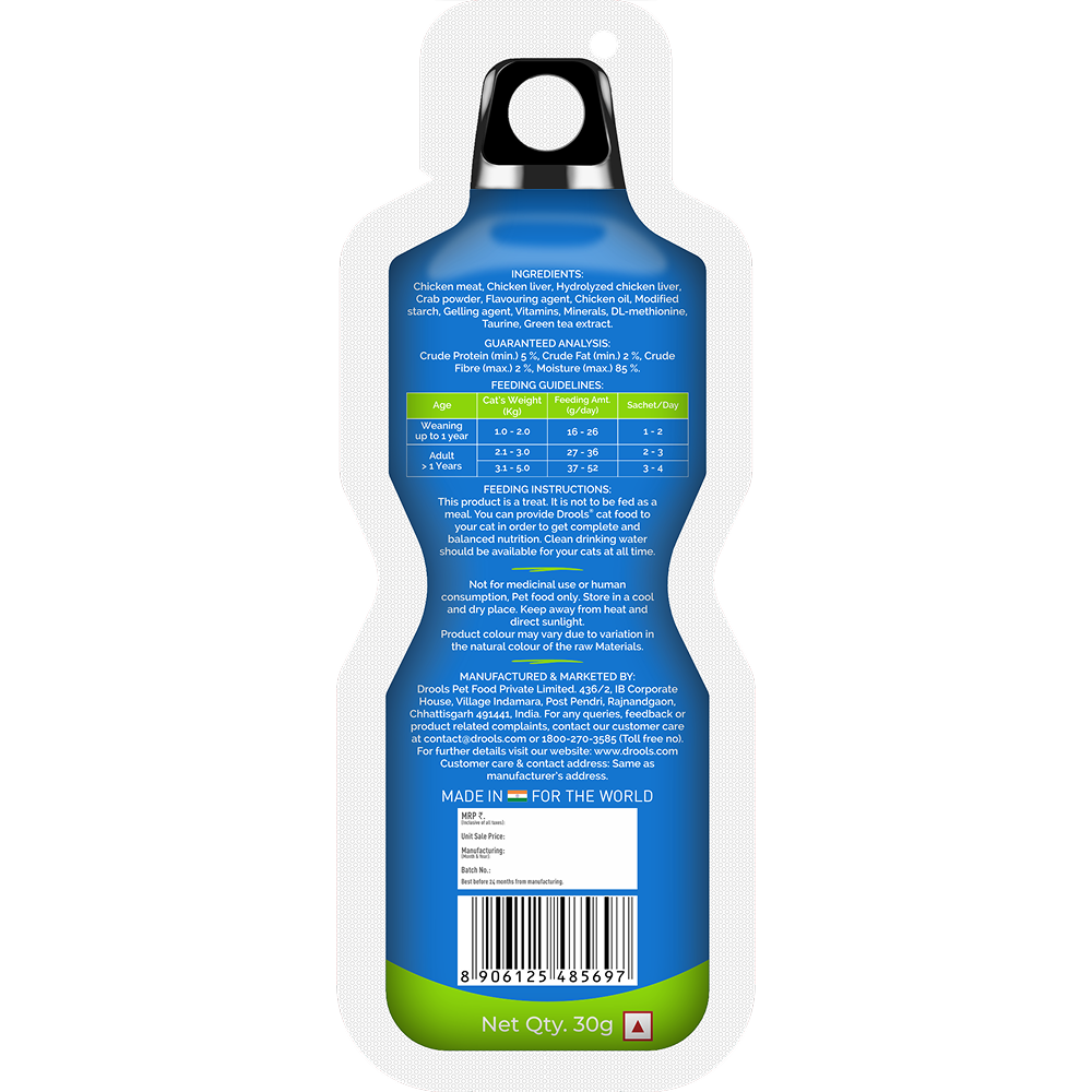 Treat your cat to the delectable Drools Creamy Crab and Chicken Cat Treats! This lickable treat combines the rich flavors of real chicken and crab with high-quality chicken, creating a creamy texture your cat will adore.