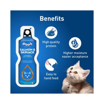 Treat your cat to the delectable Drools Creamy Salmon and Skipjack Treats! This lickable treat combines the rich flavors of salmon and skipjack with high-quality chicken, creating a creamy texture your cat will adore.
