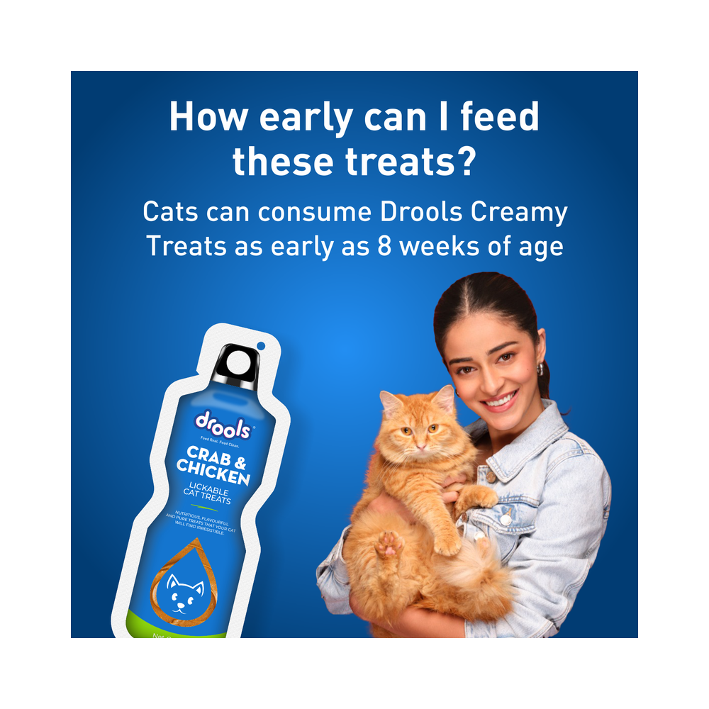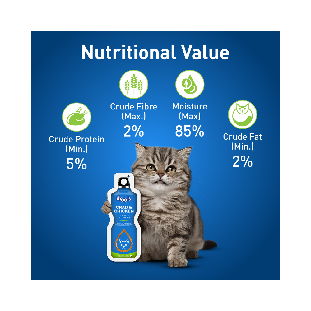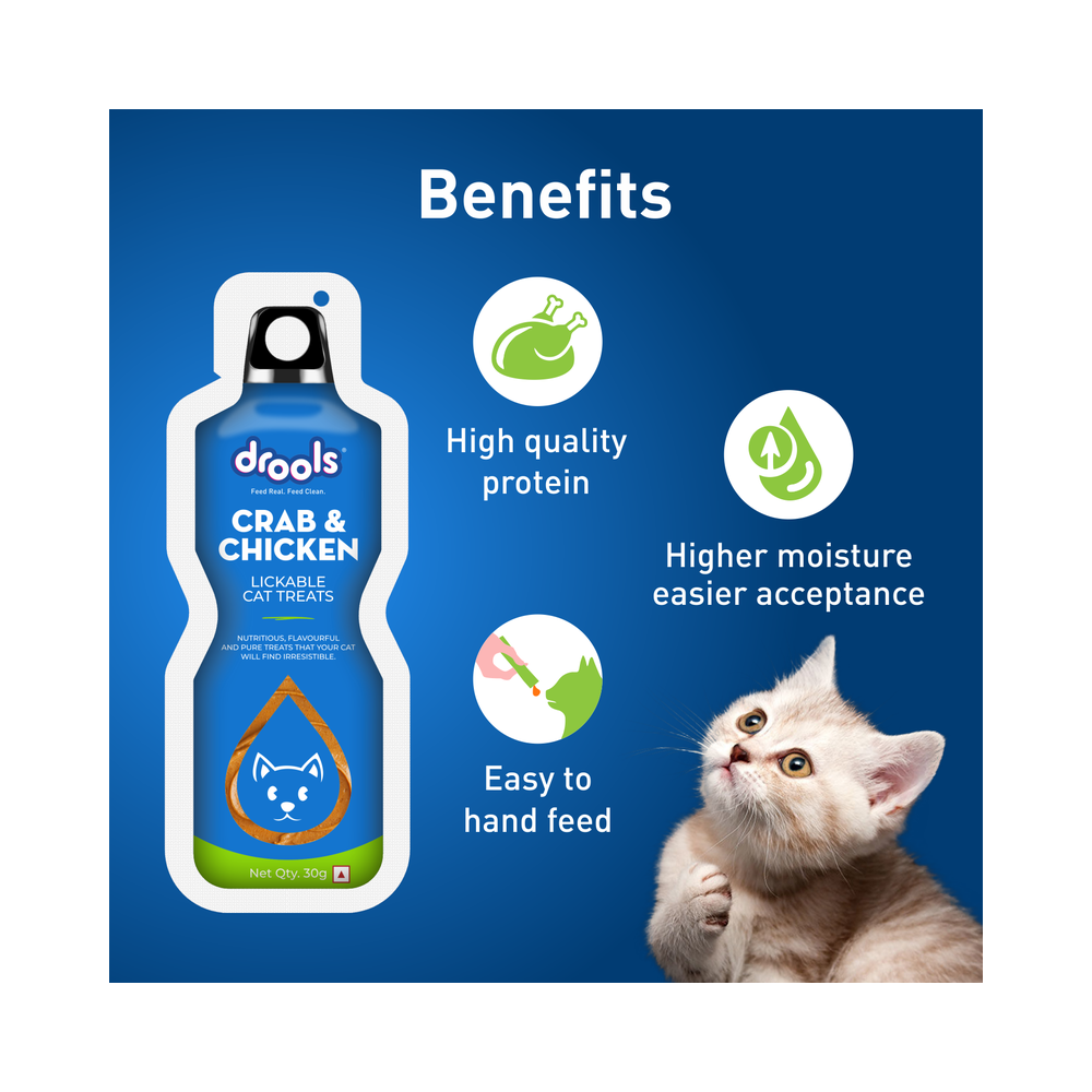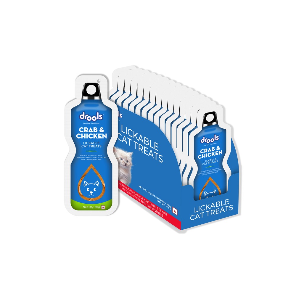Treat your cat to the delectable Drools Creamy Crab and Chicken Cat Treats! This lickable treat combines the rich flavors of real chicken and crab with high-quality chicken, creating a creamy texture your cat will adore.