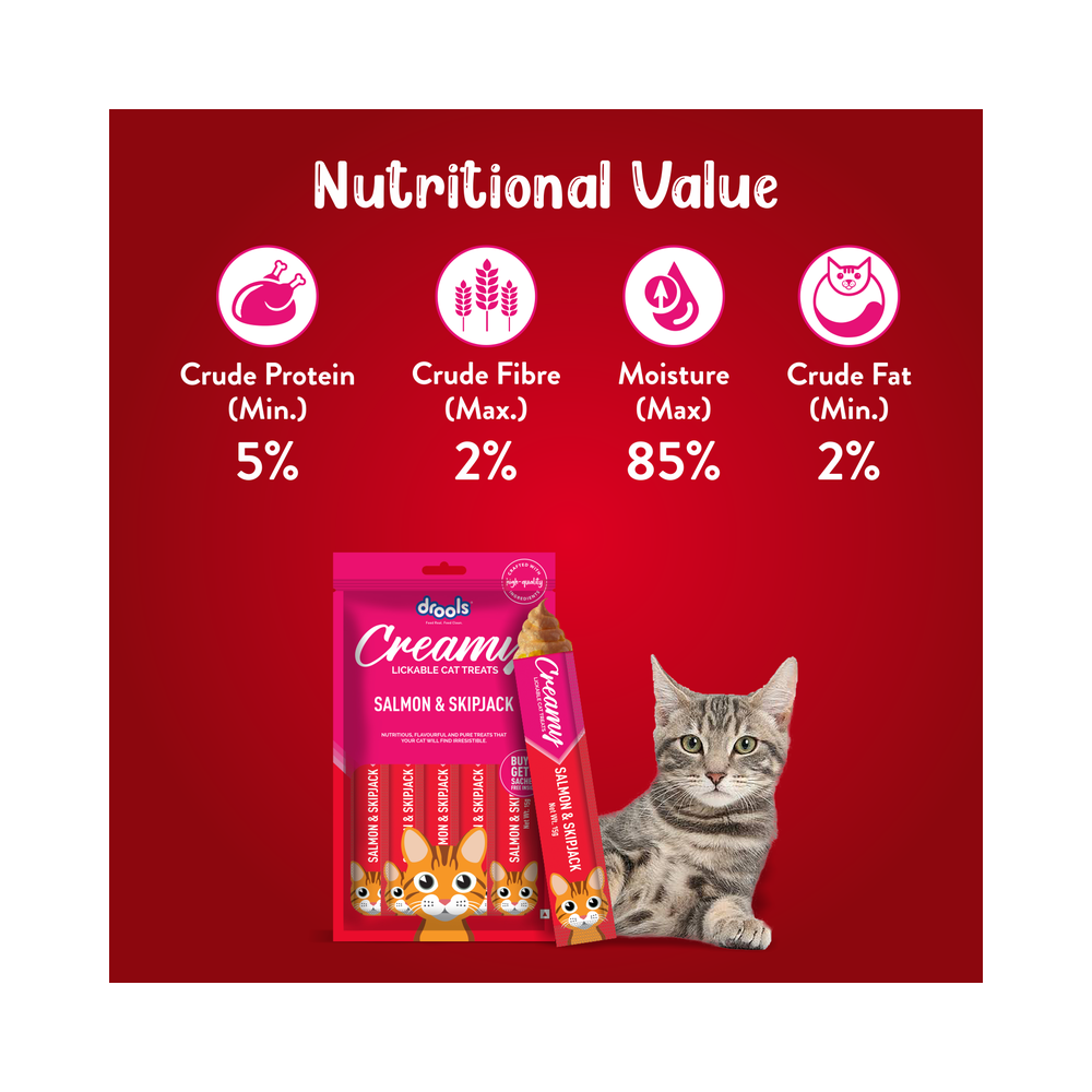 Drools Cat Creamy treats are nutritious, flavourful and pure treats that your cat will find irresistible.