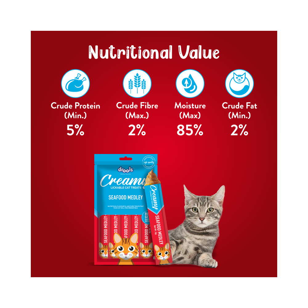 Drools Cat Creamy treats are nutritious, flavourful and pure treats that your cat will find irresistible.