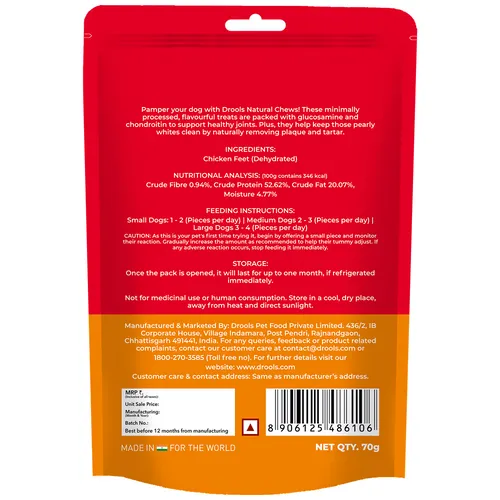 Pamper your dog with Drools Natural Chews! These minimally processed, flavourful treats are packed with glucosamine and chondroitin to support healthy joints. Plus, they help keep those pearly whites clean by naturally removing plaque and tartar.