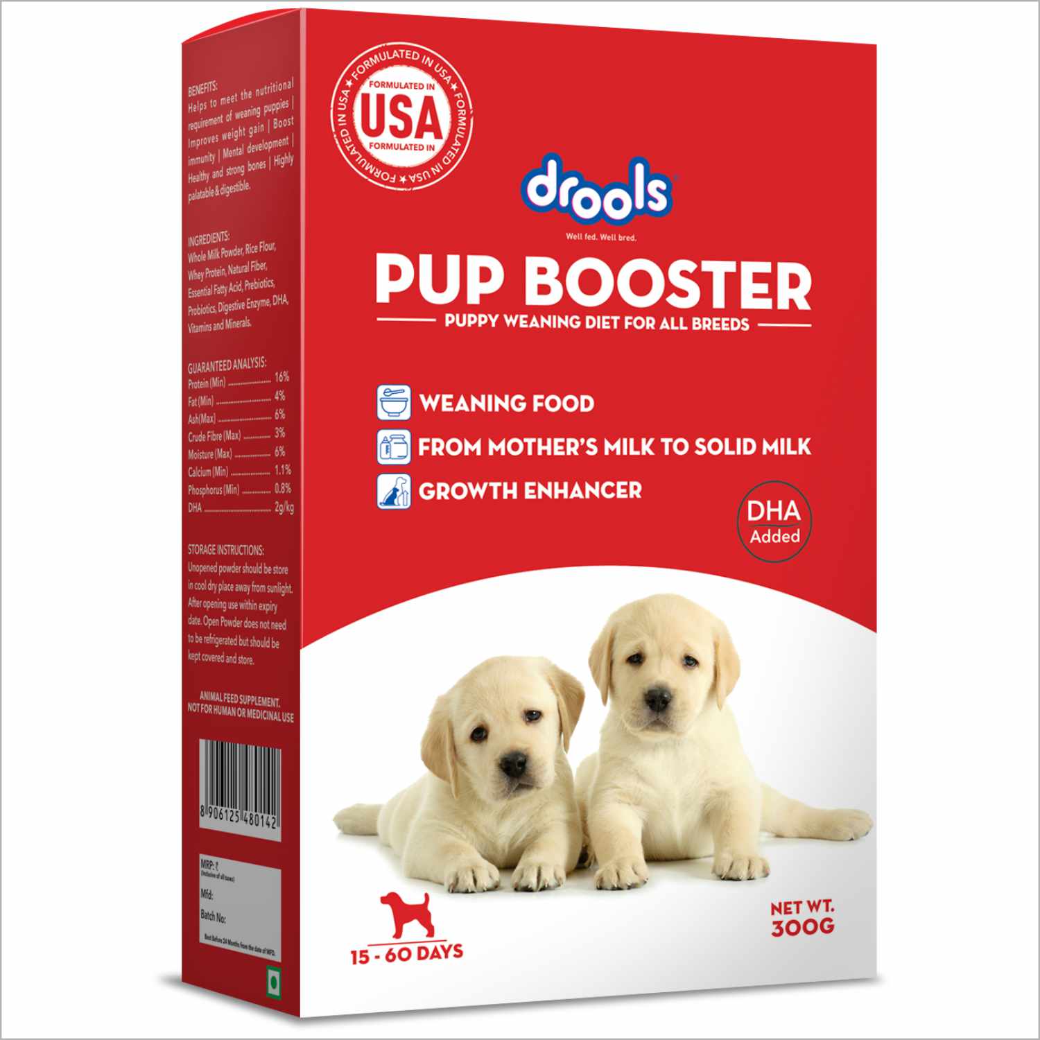Drools Pup booster is precisely formulated to emulate the mother's milk with an optimal balance of vitamin, minerals and other nutrients to support growth and development during weaning phase.