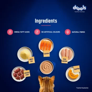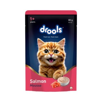 Drools Salmon Mousse is a protein rich, soft textured wet food specially formulated to support the overall health of adult cats. Made with salmon, real chicken and hydrolysed chicken liver, it provides high quality animal proteins to help maintain lean muscle mass. Enriched with essential vitamins and antioxidants to promote a strong immune system, and omega fatty acids to support healthy skin and a shiny coat. Free from artificial colors and preservatives, this smooth mousse offers complete nutrition to keep your adult cat active, healthy and satisfied every day.