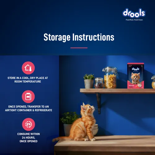 Drools Salmon Mousse is a soft, protein rich wet food specially formulated to support the healthy growth and development of kittens. Made with real salmon, chicken, and hydrolysed chicken liver, it provides high quality animal proteins essential for building strong muscles. Enriched with essential vitamins, minerals, and antioxidants to help strengthen immunity, and added pumpkin for digestive support, this smooth textured mousse is easy to lick and digest perfect for young, developing kittens.