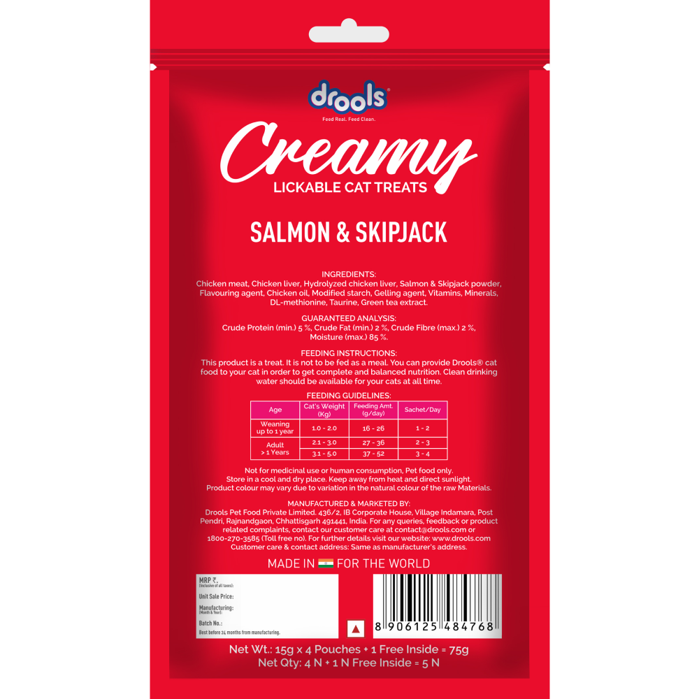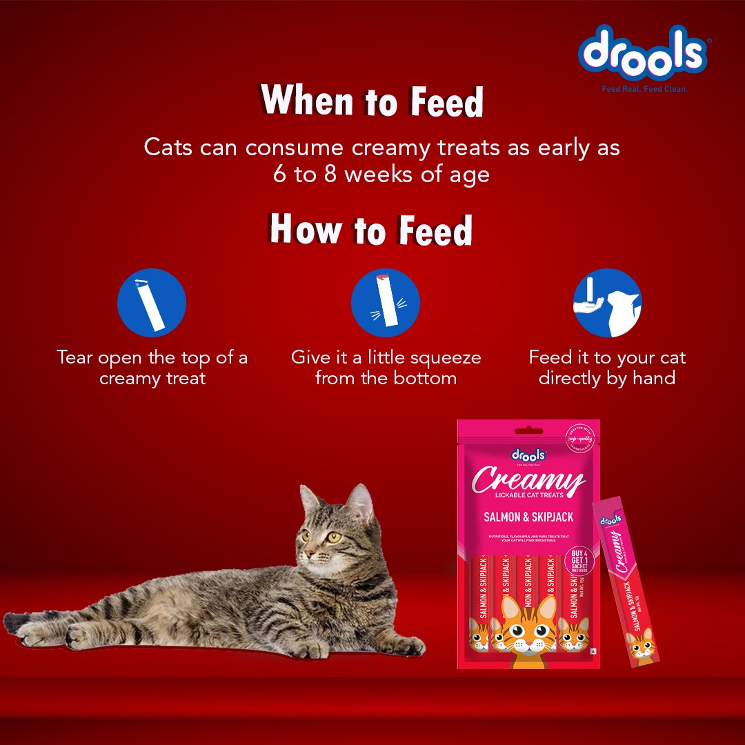 Drools Cat Creamy treats are nutritious, flavorful and pure treats that your cat will find irresistible.