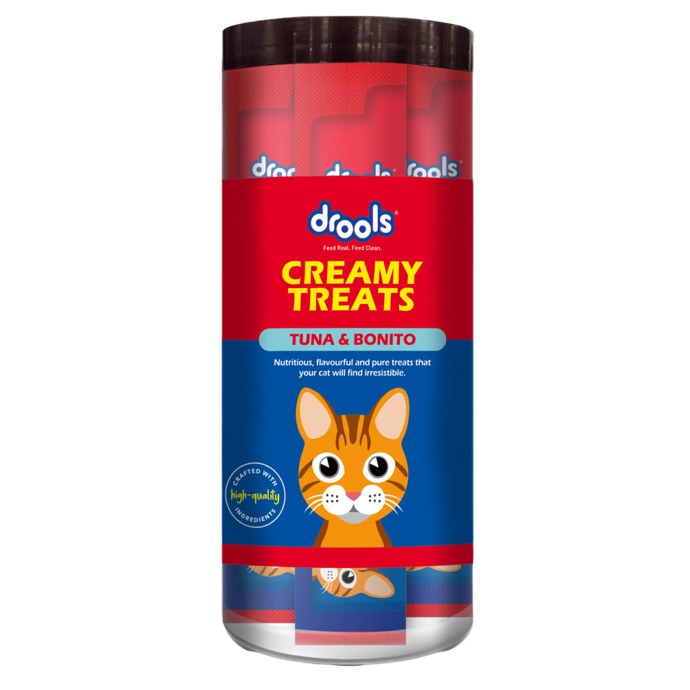 Indulge your feline friend with Drools Tuna & Bunito Creamy Cat Treats, a delectable and nutritious snack that combines the rich flavours of tuna and bonito. These creamy treats are perfect for pampering your cat or rewarding them during training. Made with high-quality ingredients, Drools ensures that every bite is packed with essential nutrients to support your cat's overall well-being. Ideal for all cat breeds and ages, these treats are not only irresistible but also promote a healthy lifestyle.