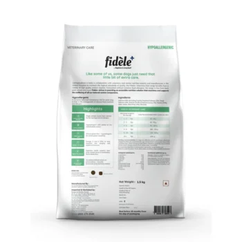 Fidele+ Veterinary Hypoallergenic Diet is a complete balanced maintenance diet for adult dogs to help in the management of adverse food reactions and allergies.