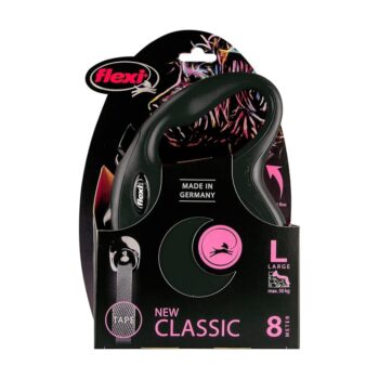 The Flexi New Classic Tape is a convenient retractable dog leash that is perfect for long walks in the countryside. You can let your dog explore as much as he or she wants while still safely being connected to you. It has a chrome snap hook to be attached to the collar and a short stroke braking system that allows you to stop the leash from extending. If you want it to be kept a specific length, you can even lock it at any time. It retracts automatically so there is no extra leash for your pet to get tangled up in. Choose the appropriate size according to the weight of your dog.