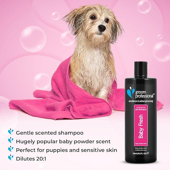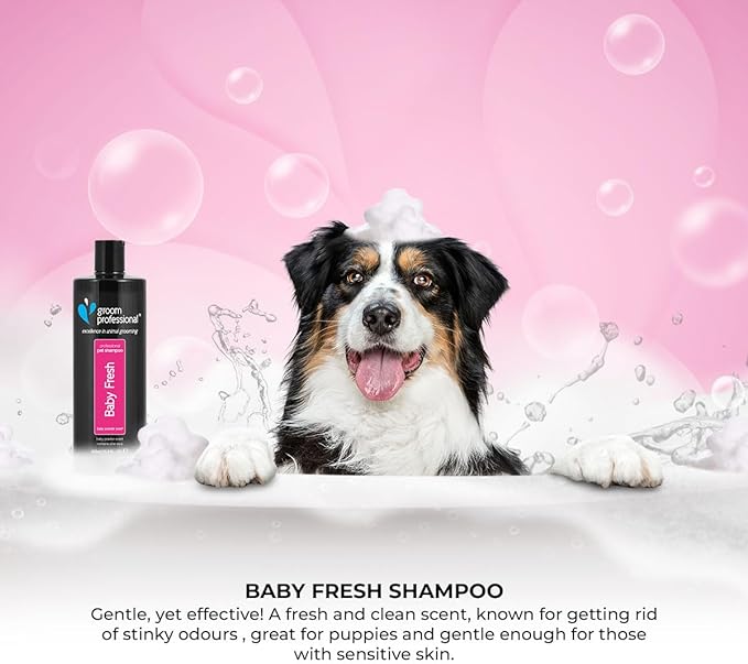 This popular shampoo is a familiar face in many-a-salon thanks to its fresh fragrance and cleaning capabilities. The baby powder scent is a favourite of many and is especially popular when used on pups, somehow making them even cuter! Gentle but effective Known for getting rid of puppy odours, this shampoo is great for pups & is particularly gentle on their young skin. It doesn’t just rid the coat of odours, the baby fresh scent left behind is long-lasting & will keep any pup fresh for days. That’s not all! contains Aloe Vera, well known for its soothing and healing properties. So, while it cleans & deodorises, it also acts as a natural conditioner to promote hair growth & reduce dandruff. Plus, at a dilution rate of 20:1, just one bottle of this high concentrate shampoo results in countless clean coats.