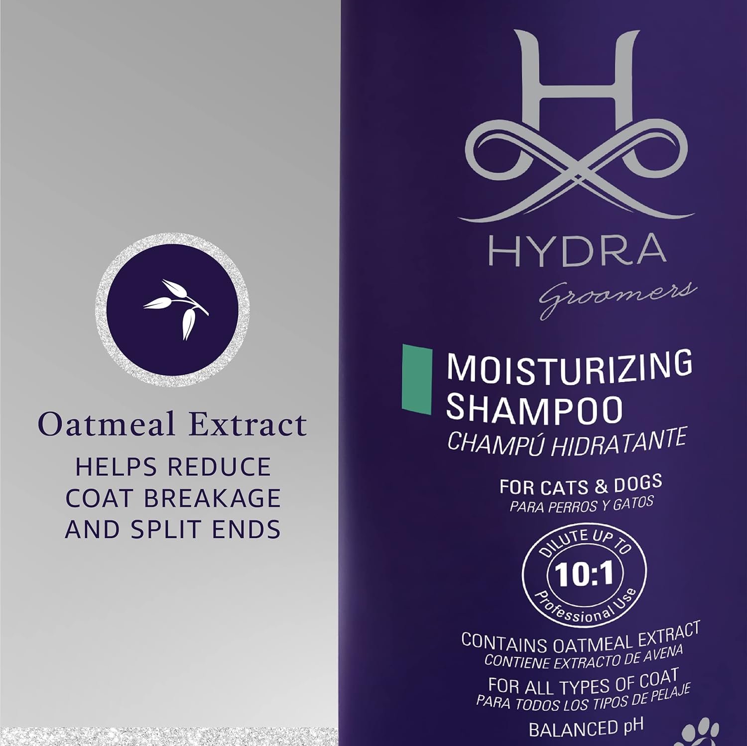 Hydra Groomer's Moisturizing Shampoo for Dogs and Cats will revitalize your pet's coat, leaving it bright and shiny while also reducing the yellowing of the coat.