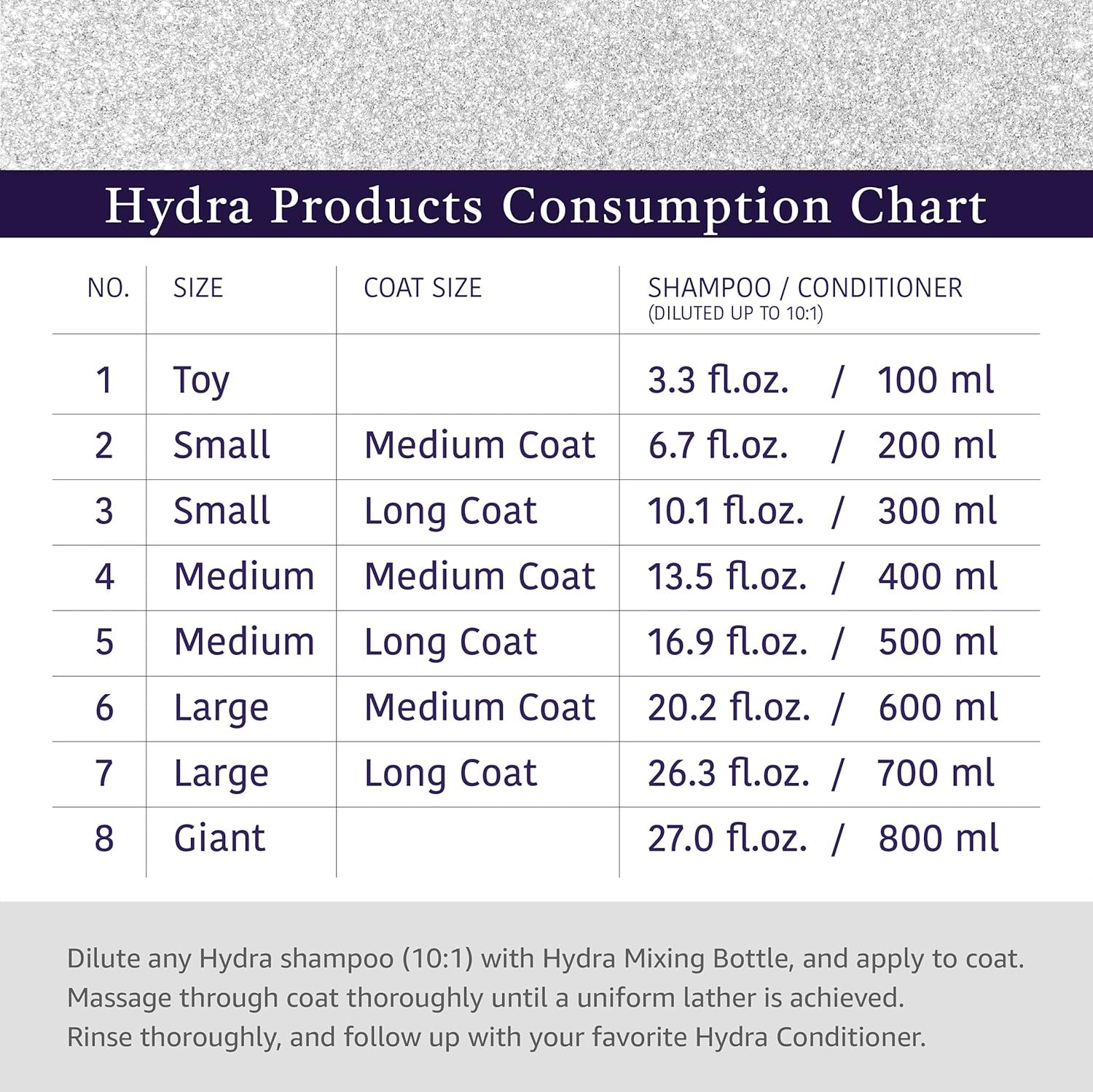 Hydra Moisturizing Shampoo for Dogs and Cats maintains skin hydration and softens the dog’s hair. It reduces split ends and breakage.