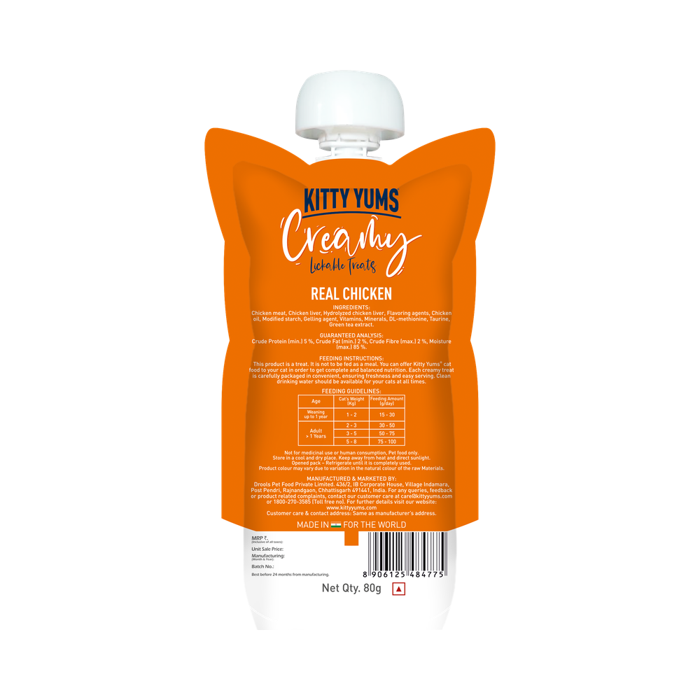 Kitty Yums introduces Chicken Infusion Cat Treats, combining premium chicken meat, liver, and hydrolyzed chicken liver for a delightful blend. Enriched with essential vitamins, minerals, taurine, and green tea extract, these treats provide a flavorful and nutritious delight for your cat. Skillfully crafted with flavoring agents, these bite-sized morsels guarantee an irresistible taste, ensuring a wholesome choice that supports your feline friend's pleasure and vitality.