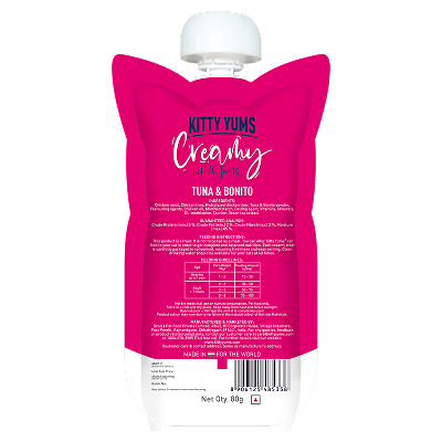 Introducing Kitty Yums Tuna & Bonito Cat Treats, a delectable fusion of premium chicken meat, liver, hydrolyzed chicken liver, and tantalizing tuna & bonito powder. Enhanced with essential vitamins, minerals, taurine, and green tea extract, these treats offer a flavorful and nutritious delight for your cat. Expertly crafted with flavoring agents, these bite-sized morsels ensure an irresistible taste, making them a wholesome choice for your feline friend's pleasure and overall vitality.