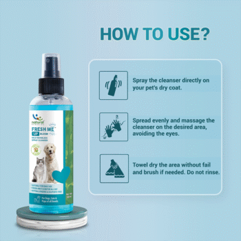 - INCLUDES MOISTURIZER AND CONDITIONER - Most dry shampoos leave your pet with dry coat which leads to hairfall. Fresh Me Up includes Moisturiser and Conditioner which will leave the coast shiny and smooth.