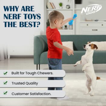 Keep your furry friend entertained for hours with the Nerf Dog Ultra Tough TPR Bone Dog Toy. The fun dog toy is molded in durable thermoplastic rubber (TPR), making it super tough, so it'll stand up to extended rounds of fetch. It's great for a game of toss and fetch or solo play sessions, too. The sapphire-colored bone also floats, making it great to play in the pool this summer. It's recommended for medium to large-sized breeds, and because it's made of 100% TPR, it's lightweight and durable.