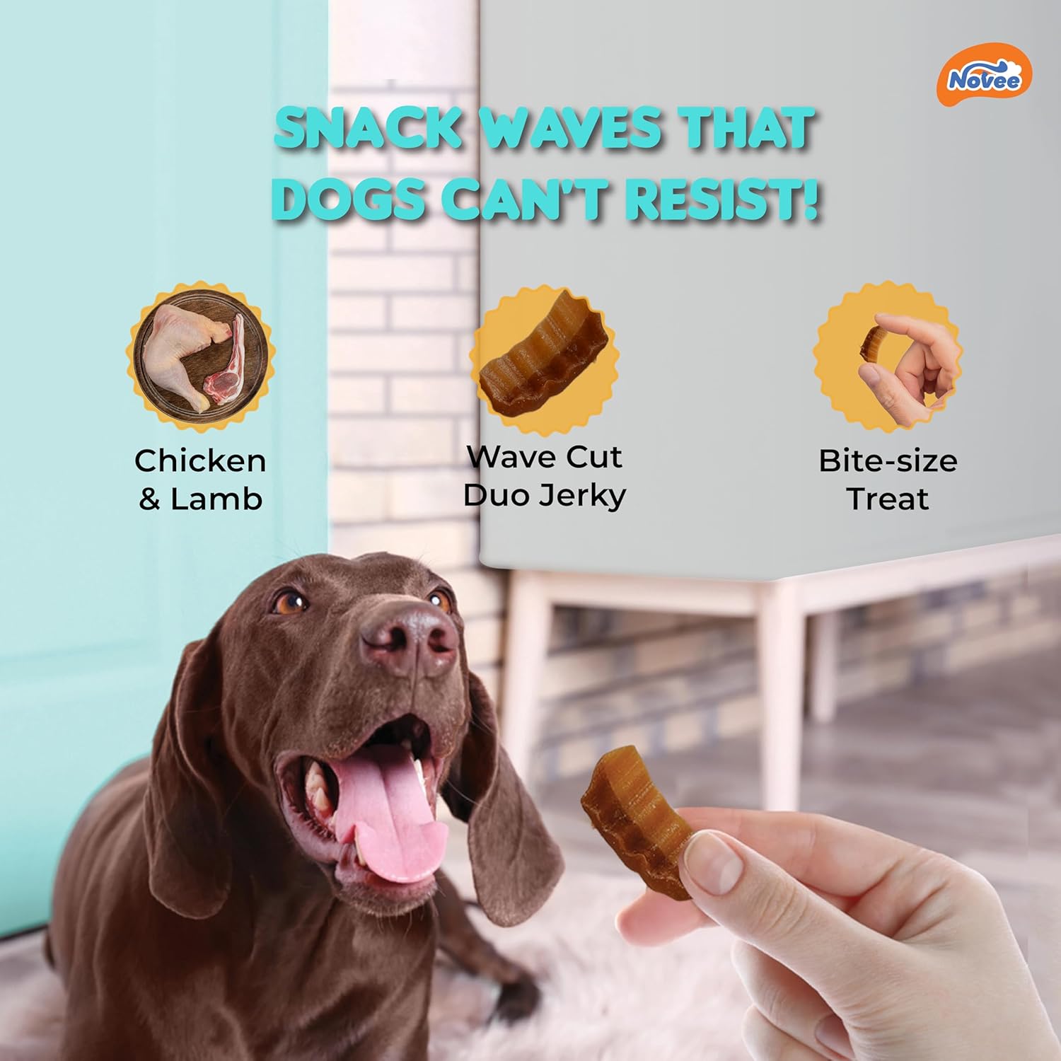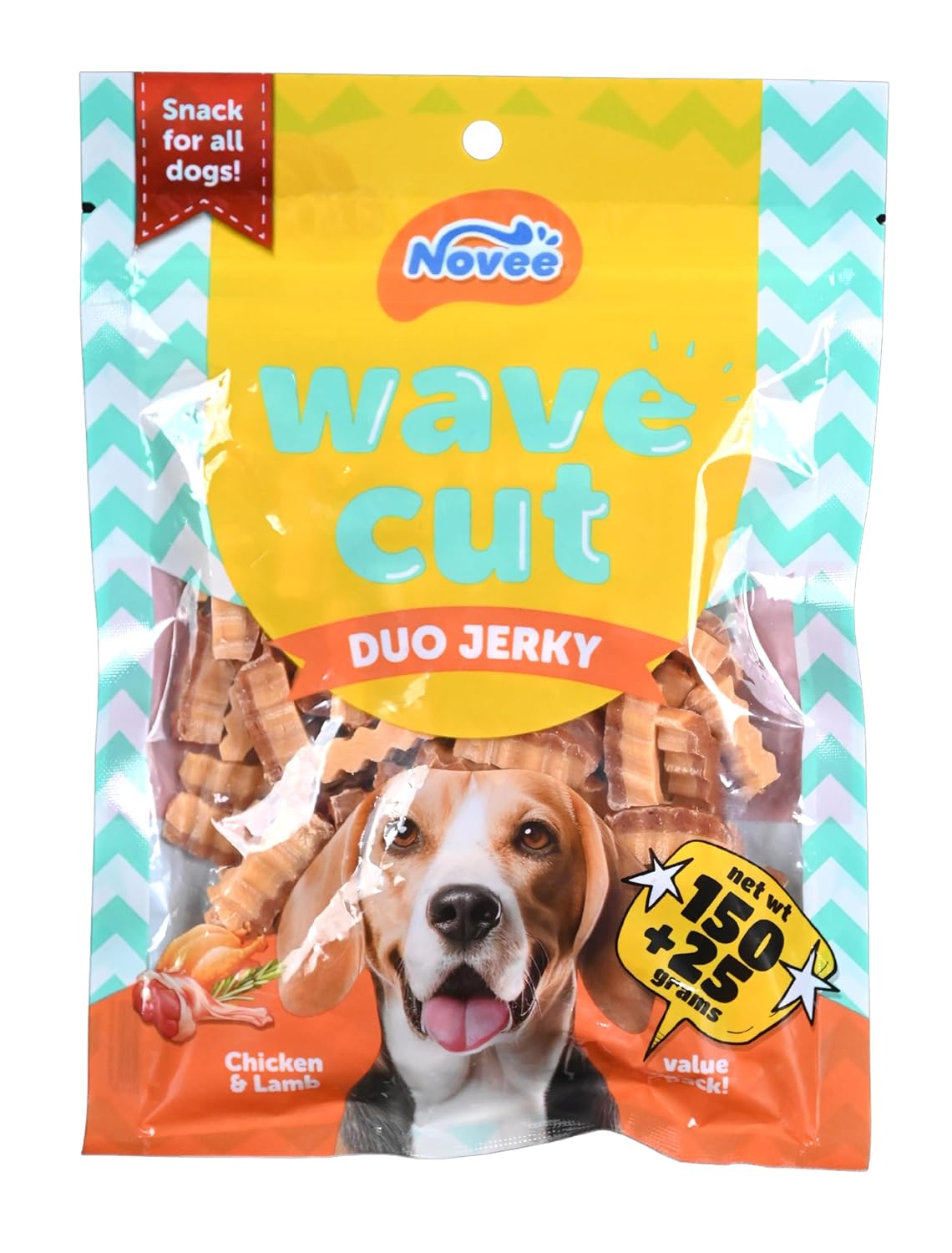 Satisfy your dog's cravings with Novee Wave Cut Duo Jerky Chicken & Lamb! This tasty treat combines the irresistible flavors of chicken and lamb, offering a protein-packed snack that dogs will adore. The unique wave cut design enhances the chewing experience while promoting dental health. Made with high-quality ingredients, these jerky treats are perfect for rewarding good behavior or just spoiling your furry friend!