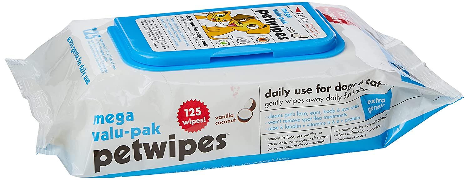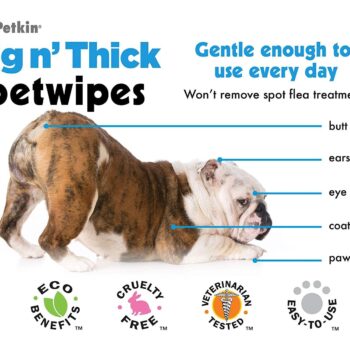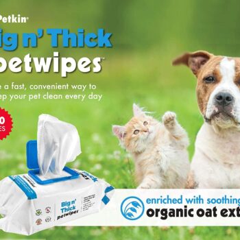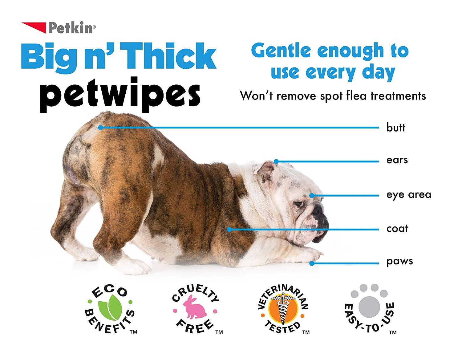 Big n' Thick PetWipes provide a fast, convenient way to keep your pet clean every day. Each big and thick, heavy duty wipe is moistened with a gentle cleansing formula enriched with organic oat extract to help soothe dry, itchy skin. Gentle enough to use every day around pet’s eyes, ears, face, and body. Won’t remove spot flea treatments.