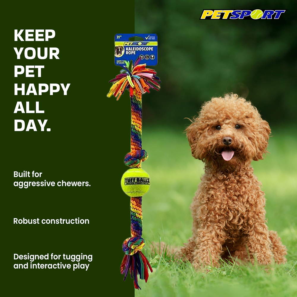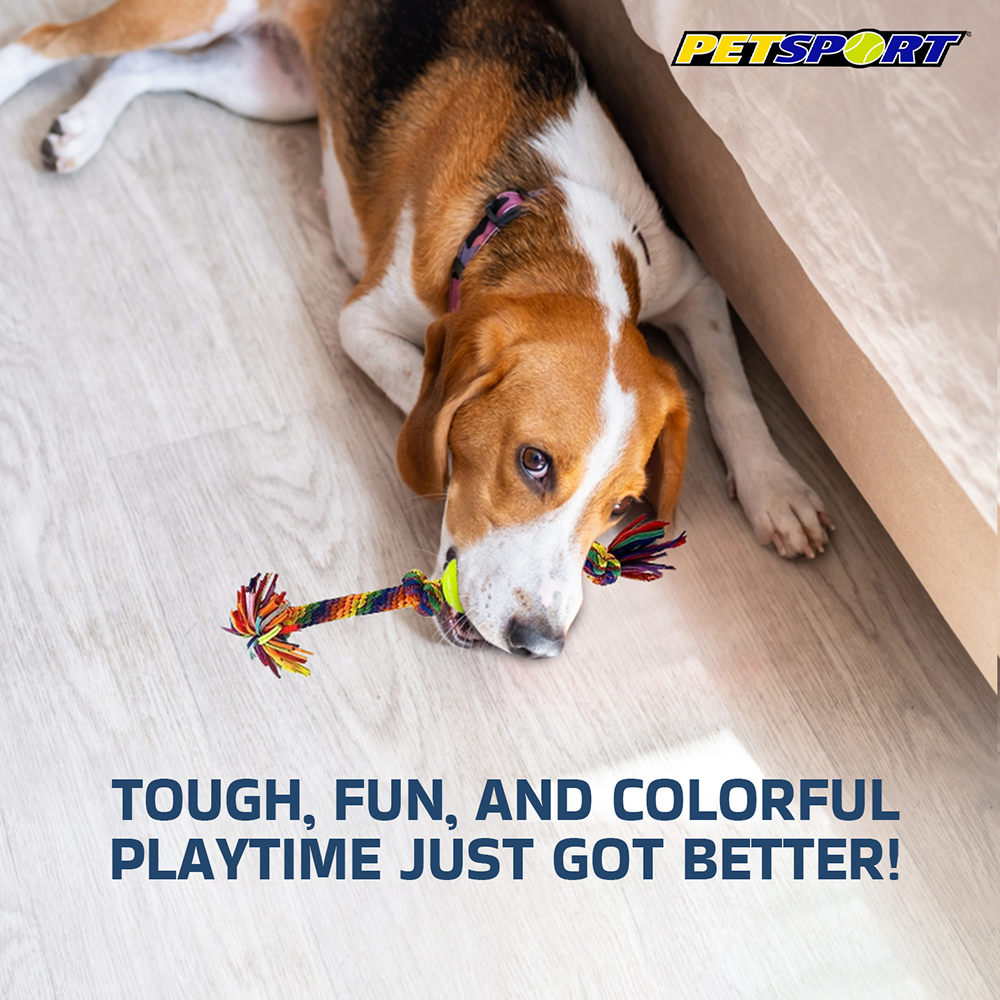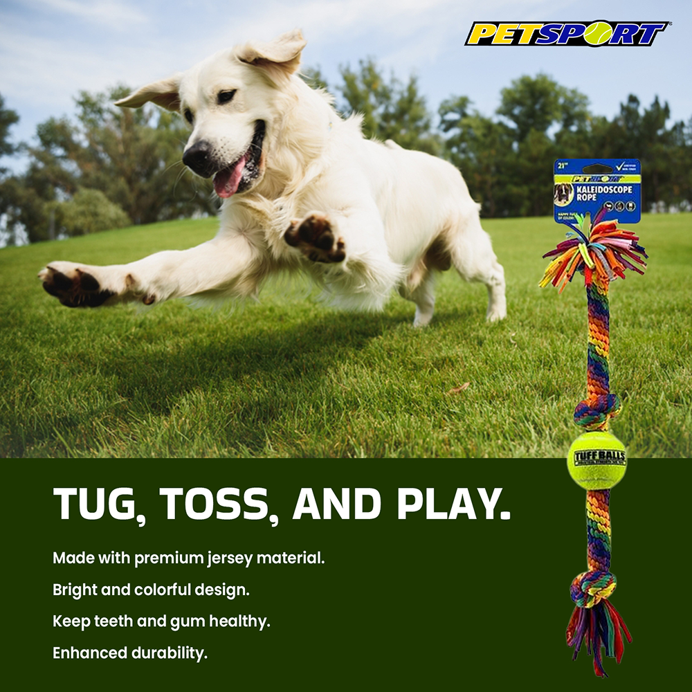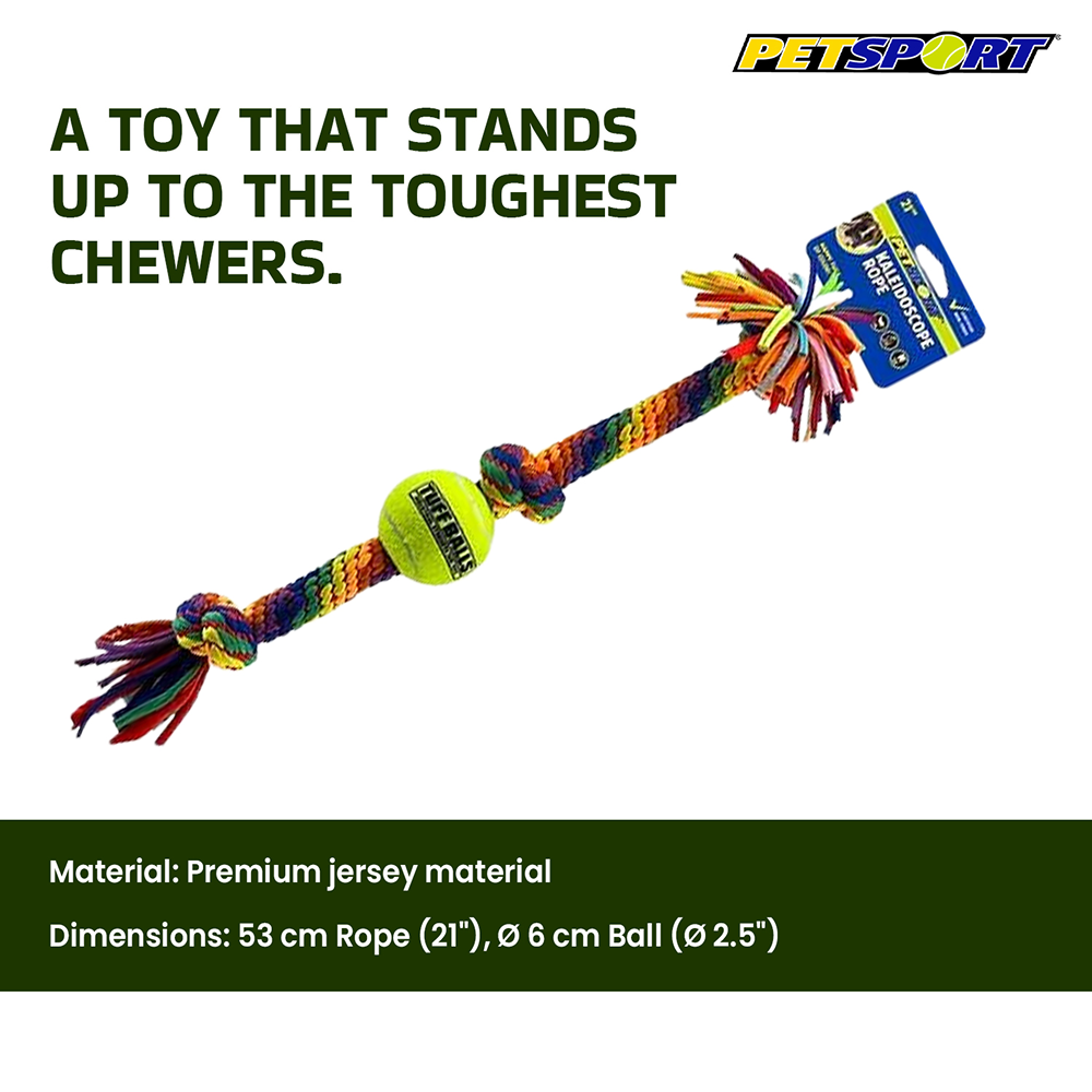 The Kaleidoscope Knot Rope by Petsport is a colorful and durable tug toy made from premium jersey material. Designed for aggressive chewers, it promotes dental health while providing hours of interactive fun.