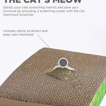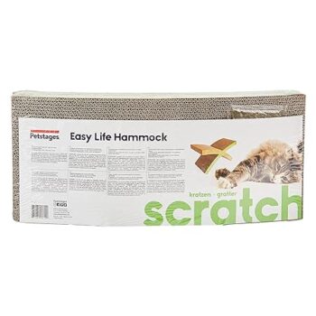 The Petstages Easy Life Hammock Cat Scratcher is a fan favourite among cats! Constructed from thick, corrugated cardboard to withstand cats weighing up to 20 lbs. and under, this 2-in-1 lounge scratching post keeps your kitty's claws healthy while providing a perfect place to perch. This cat scratcher bed is easy to assemble with two pieces that glide together to create the "X" design. Catnip is included to entice your kitty to build positive scratching habits and support a relaxing experience.