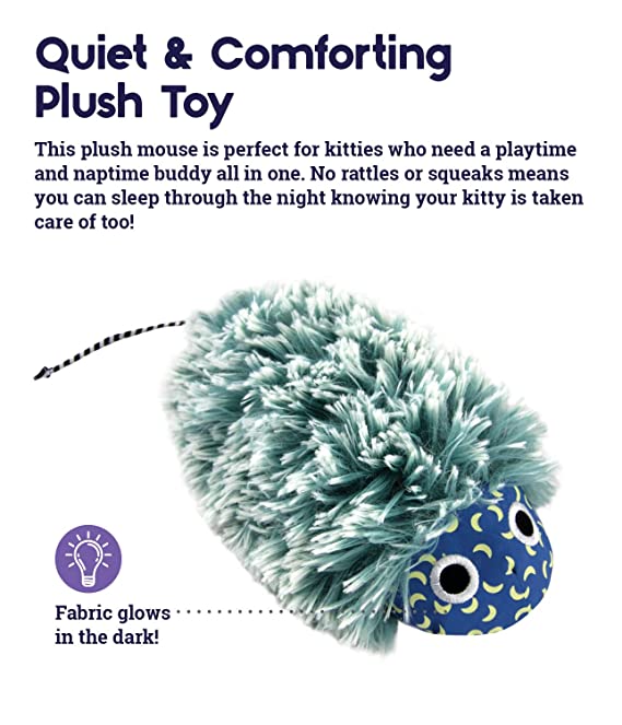 • Quiet & Comforting Plush Toy: The Nighttime Cuddle plush mouse is a soft and cuddly toy that is perfect for kitties who need a playtime and naptime buddy all in one. No rattles or squeaks means you can sleep through the night knowing your kitty is taken care of too!