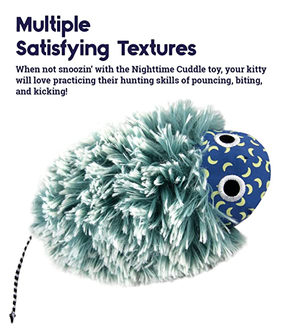 • Multiple Satisfying Textures: When not snoozin' with the Nighttime Cuddle cat toy, your kitty will love practicing their hunting skills of pouncing, biting, and kicking!