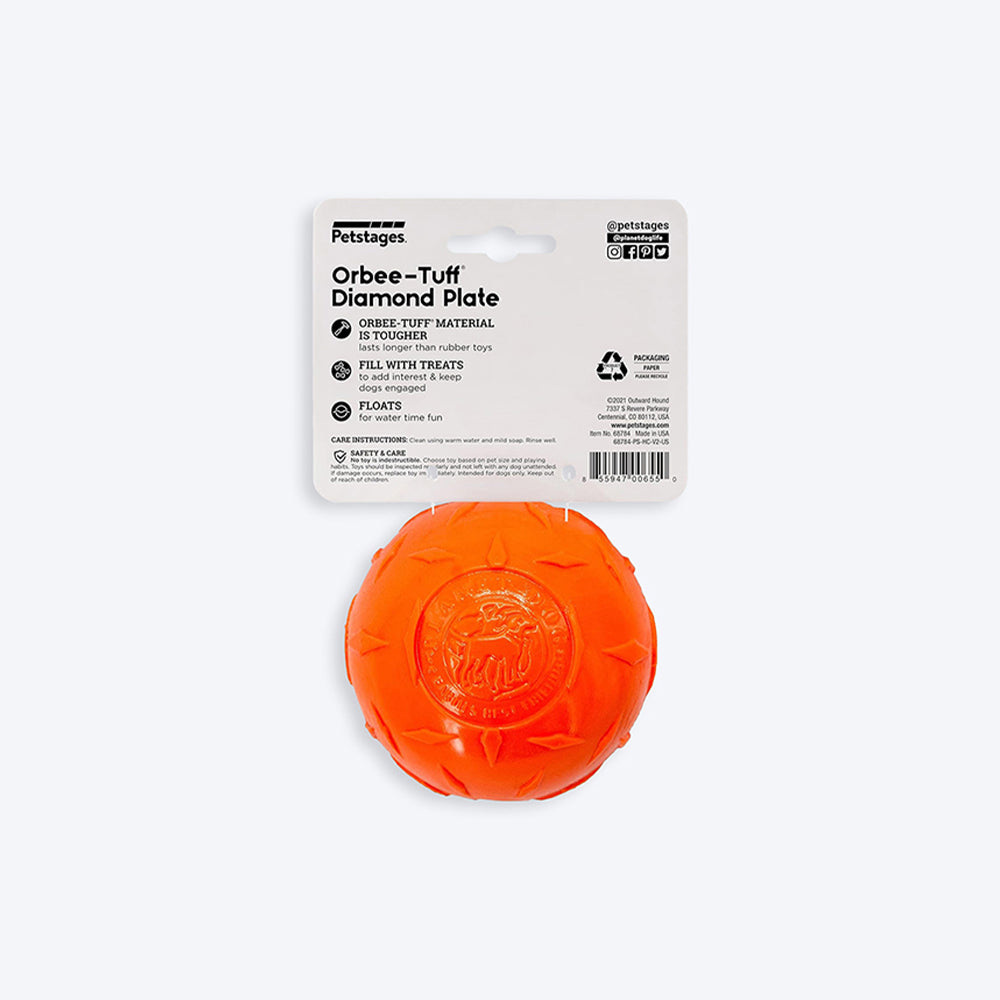 Petstages Orbee-Tuff Diamond Plate Treat Dispensing Ball Interactive Dog Toy – Orange – S