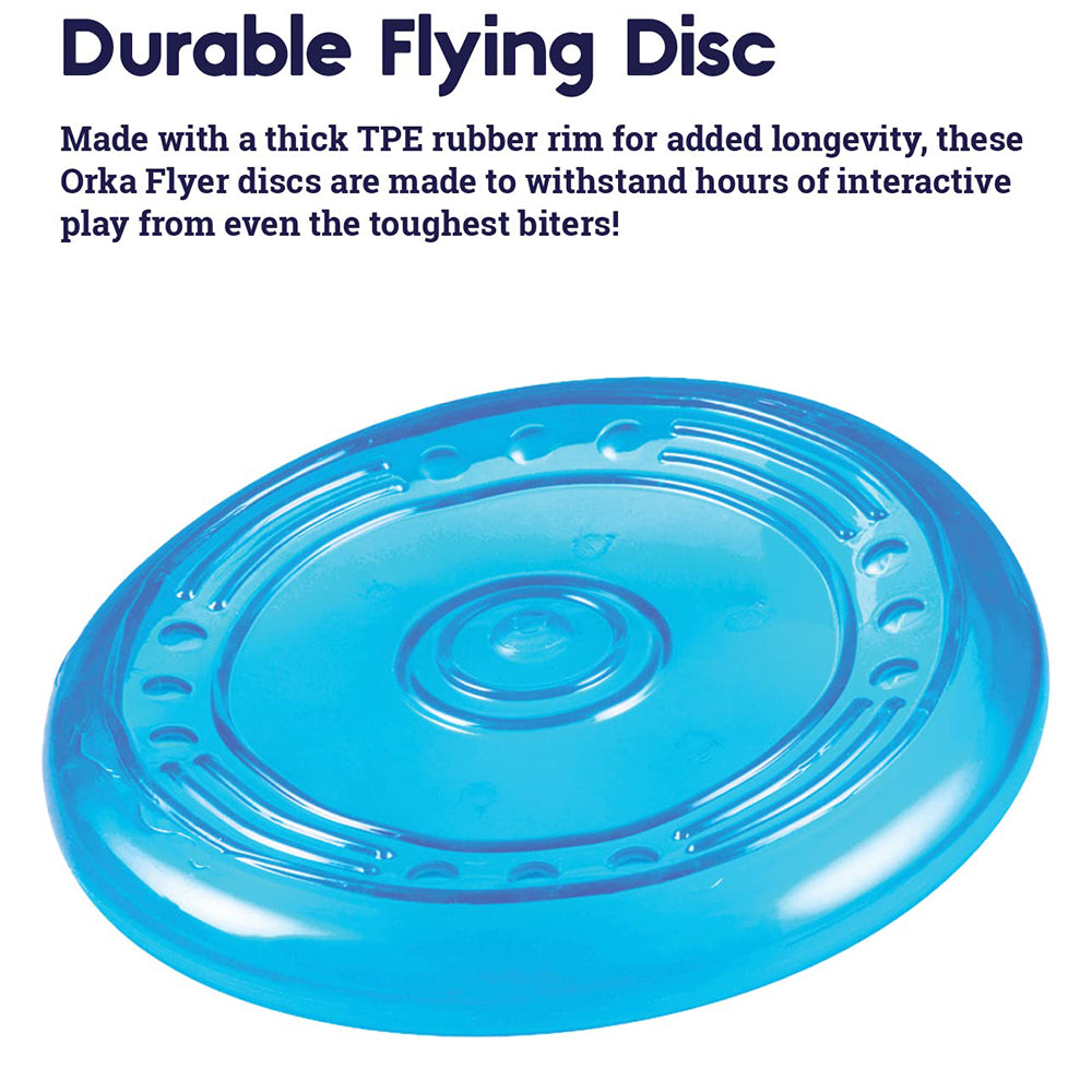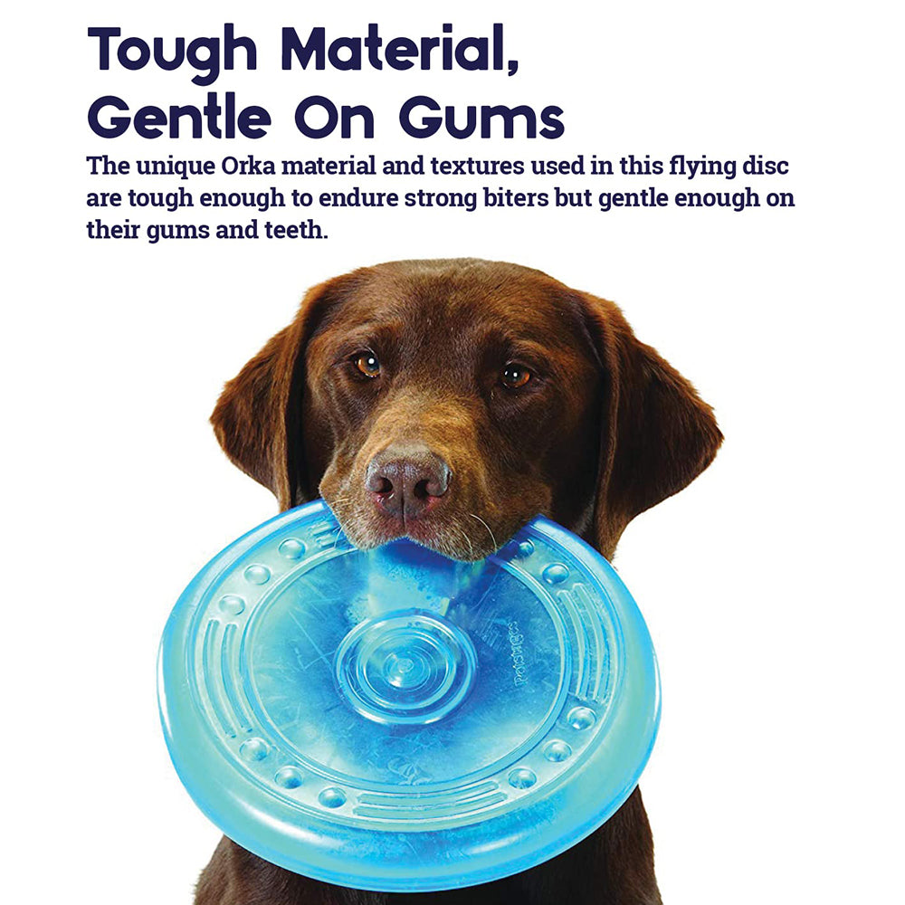 A versatile toy, the Outward Hound Orka Flyer can be chewed, fetched and flung for hours of fun. Suitable for both indoor and outdoor play, the thick rim adds to durability. Simple to grip, you can easily toss it for your pet to fetch. The material is gentle on your pet's jaws. Raised dots massage the gums.