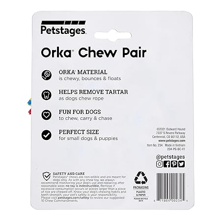 Designed for dogs that love to chew, Petstages ORKA chew toys are made of a durable, non-toxic, synthetic rubber, combining fun and function in one toy. By providing a dog with an appropriate chew object, owners can help reduce a dog's boredom and destructive behavior. The ORKA Bone is the perfect shape to chew, carry and chase while enhancing dental and jaw health as your dog chews.