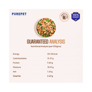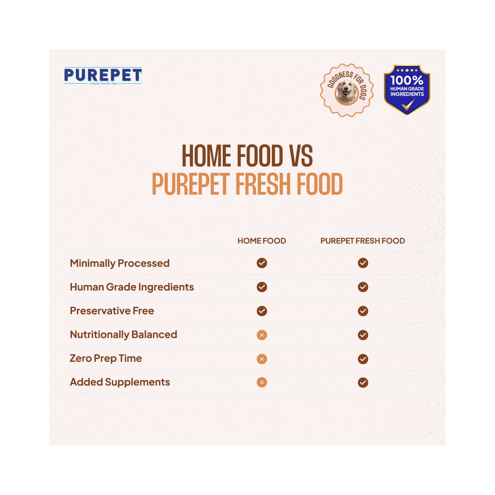 Crafted with farm-fresh, human-grade ingredients and expertly formulated by pet nutritionists, these ready-lo-eat meals are designed to support your dog's vitality. Slow-cooked in our cutting - edge kitchen, each recipe retains essential nutrients and delicious flavour, like a lovingly prepared home-cooked meal. This complete and balanced food combines the comfort of home-style goodness with the precise nutrition your dog needs. Because every loyal companion deserves a chef-prepared meal in their bowl.